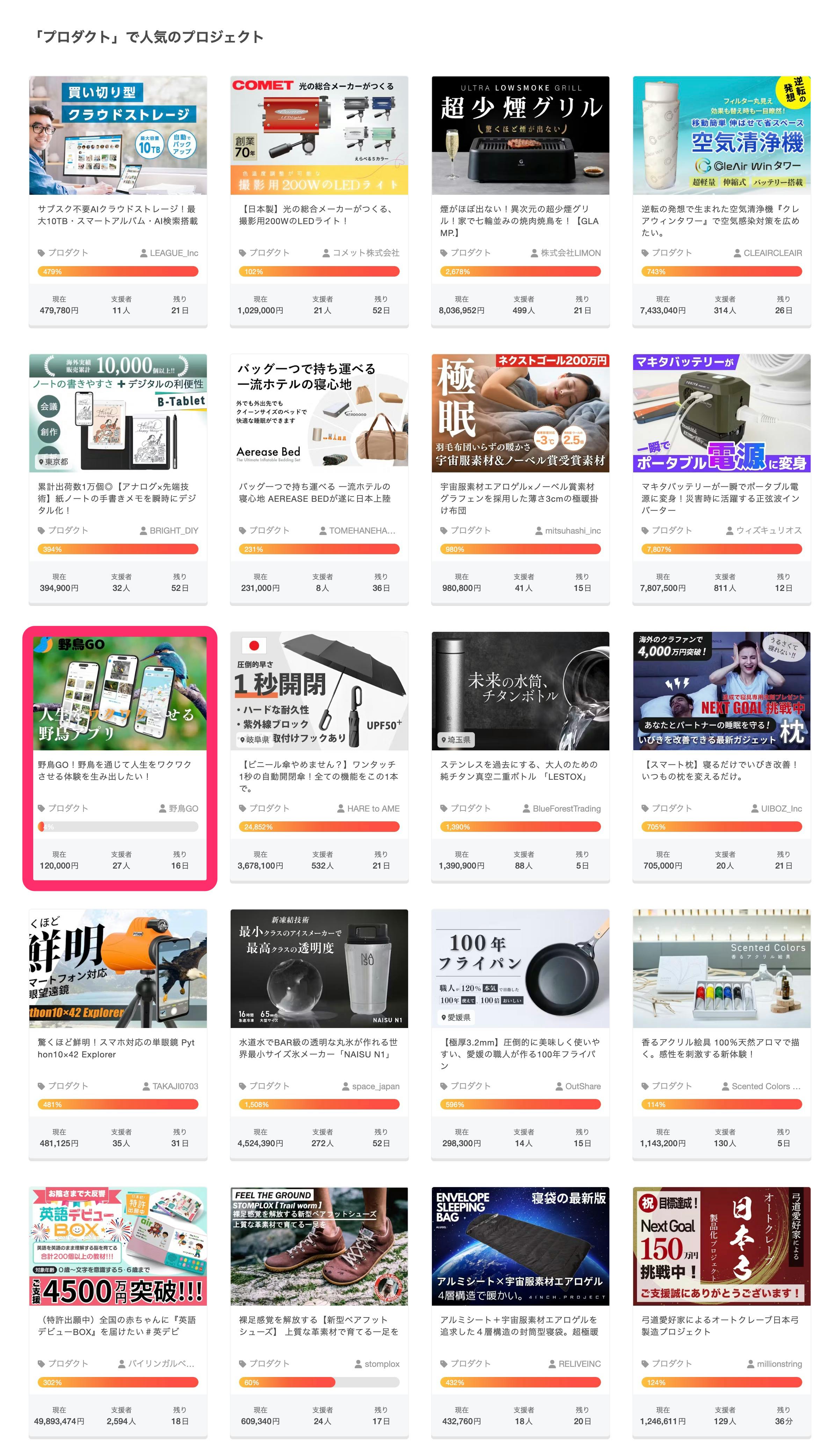 初日に支援いただいたおかげでプロダクトカテゴリで人気のプロジェクト9位に乗ることができました!!