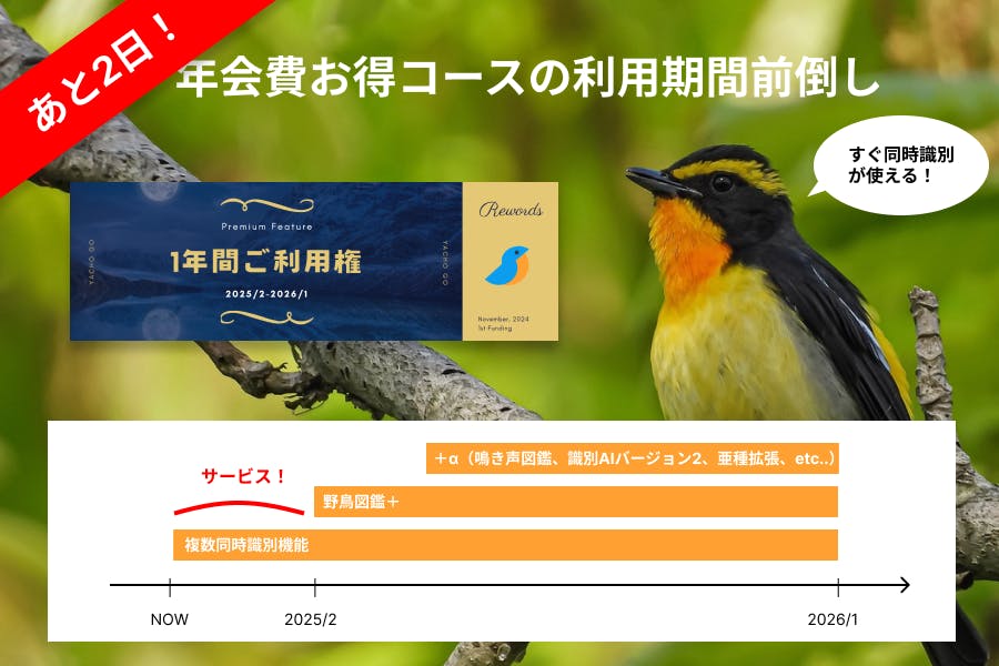 ※一部いただいたメールアドレスで野鳥GOの登録が確認できなかった方には個別に確認メッセージをお送りしておりますのでご確認ください。
