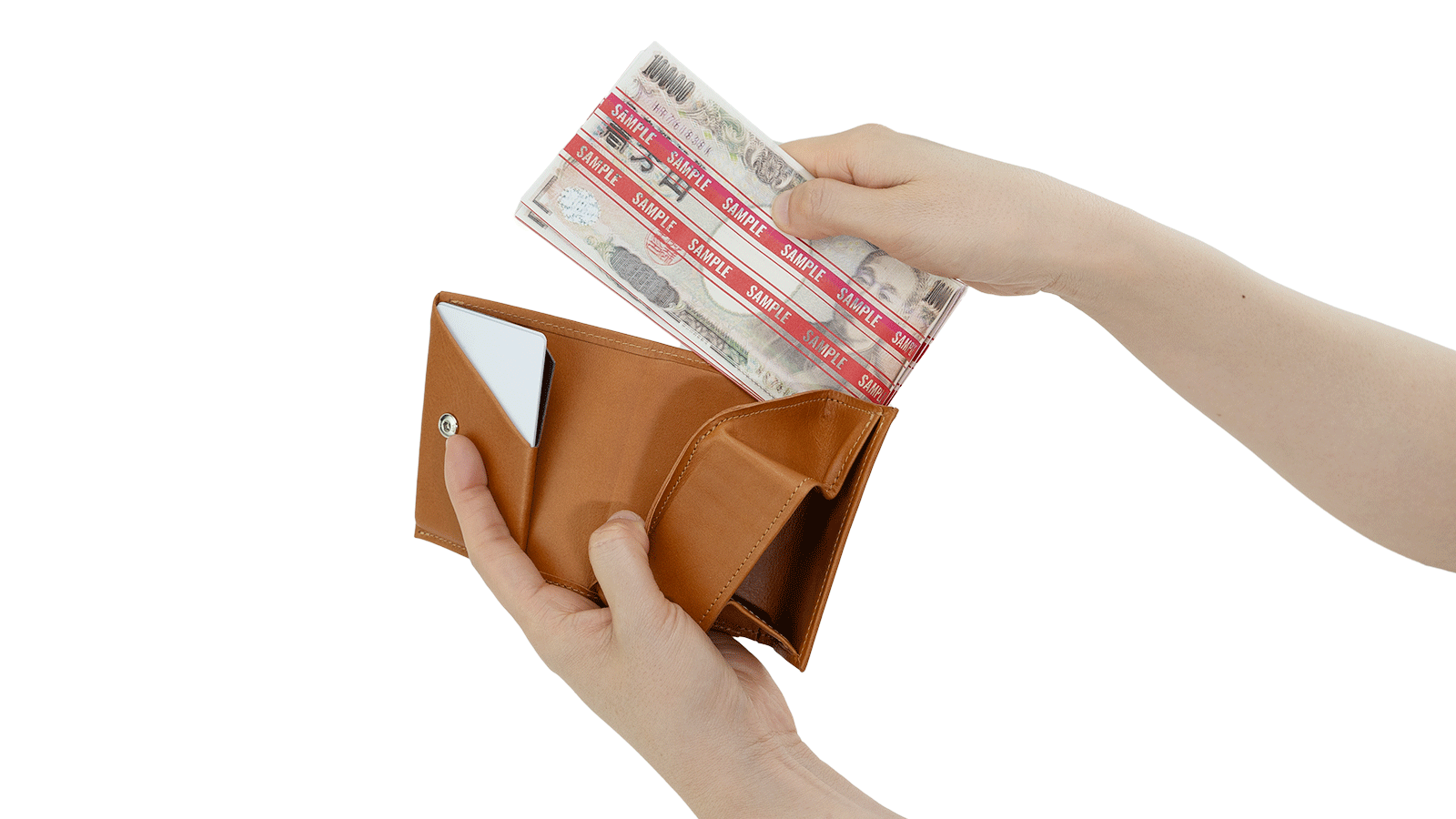 小さな財布の多くはお札を折りたたむ必要がありますが、【ミニウォレット】ならお札を折らずにそのまま収納できます。出し入れもスムーズで、使い勝手抜群です。