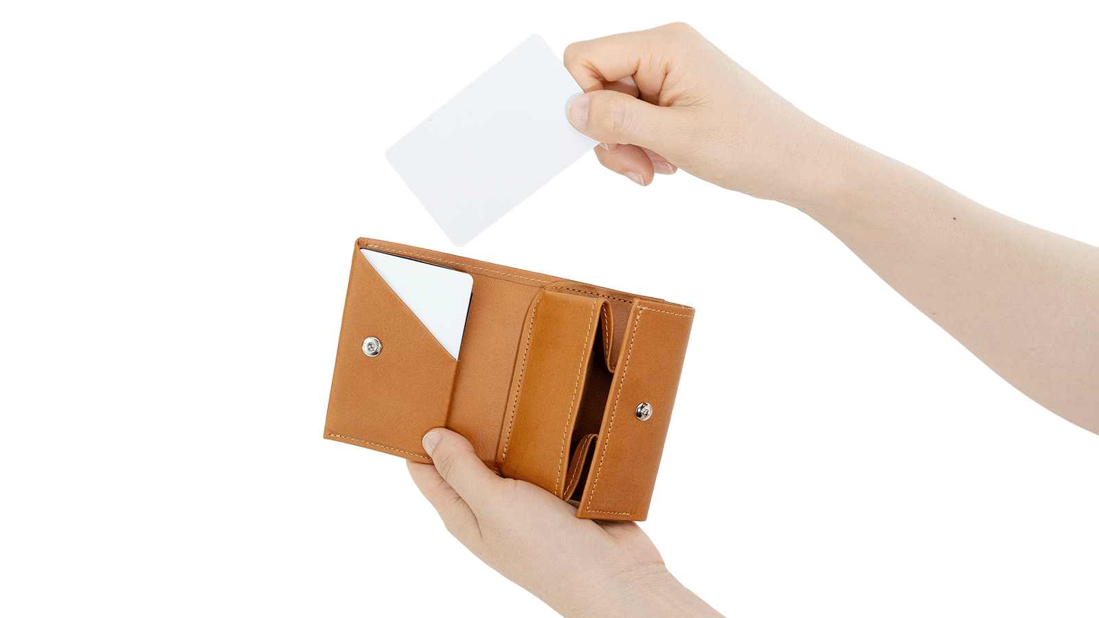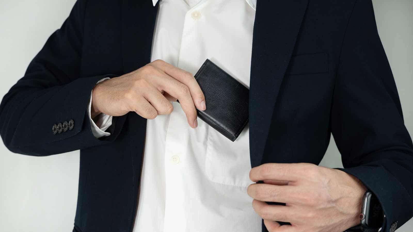外側カードポケットはタッチ決済にも対応しており、財布からカードを取り出すことなくそのまま決済が可能です。