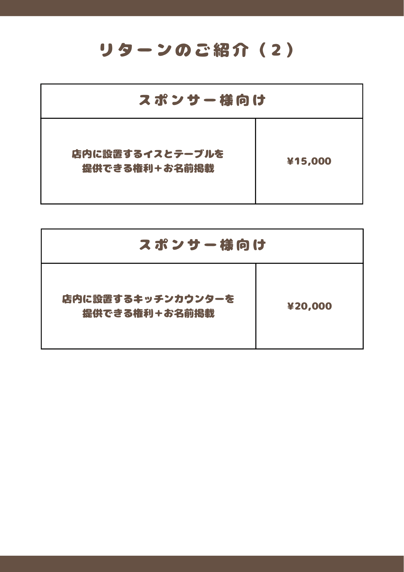 ご支援いただいた金額は全額、店舗OPENに必要な諸経費(水回りの工事やスイングドアの造作費用などの設備資金)に充てさせていただきます。