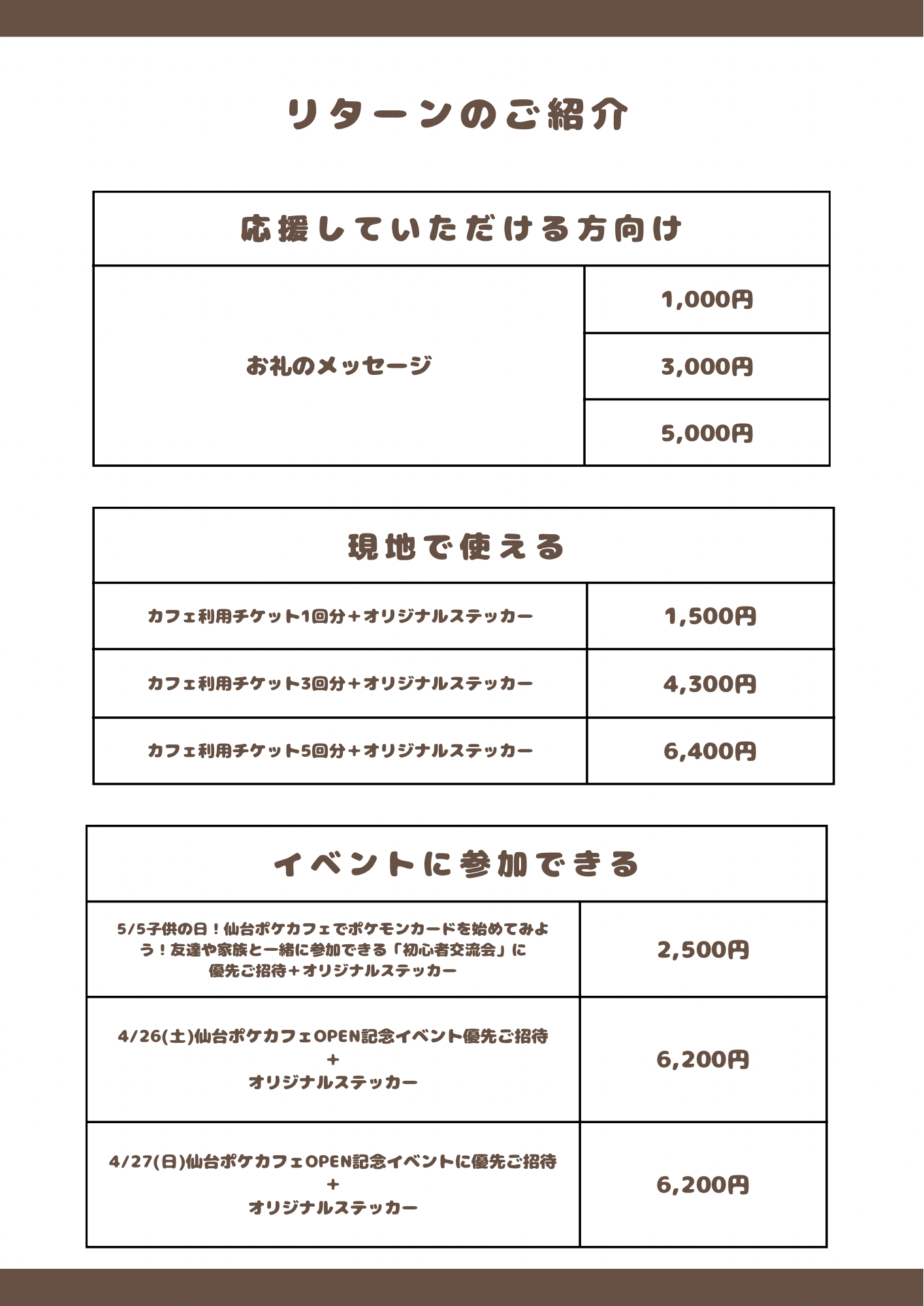 ですが、1人でも多くの方に「仙台ポケカフェ」を知ってほしいという思いも込めて、今回クラウドファンディングに挑戦いたしました。