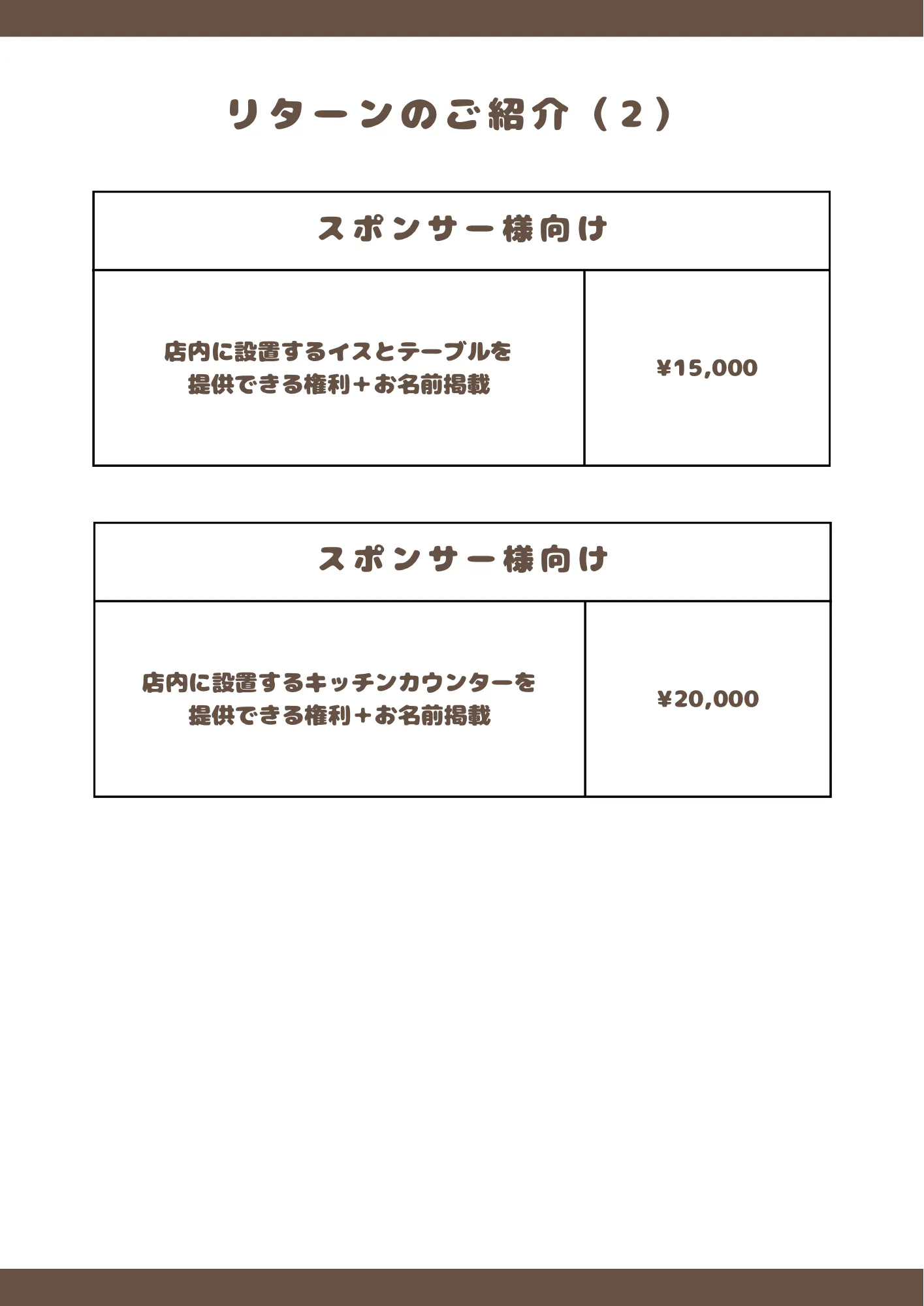 リターン内容について、一覧表にまとめておりますのでご確認ください。