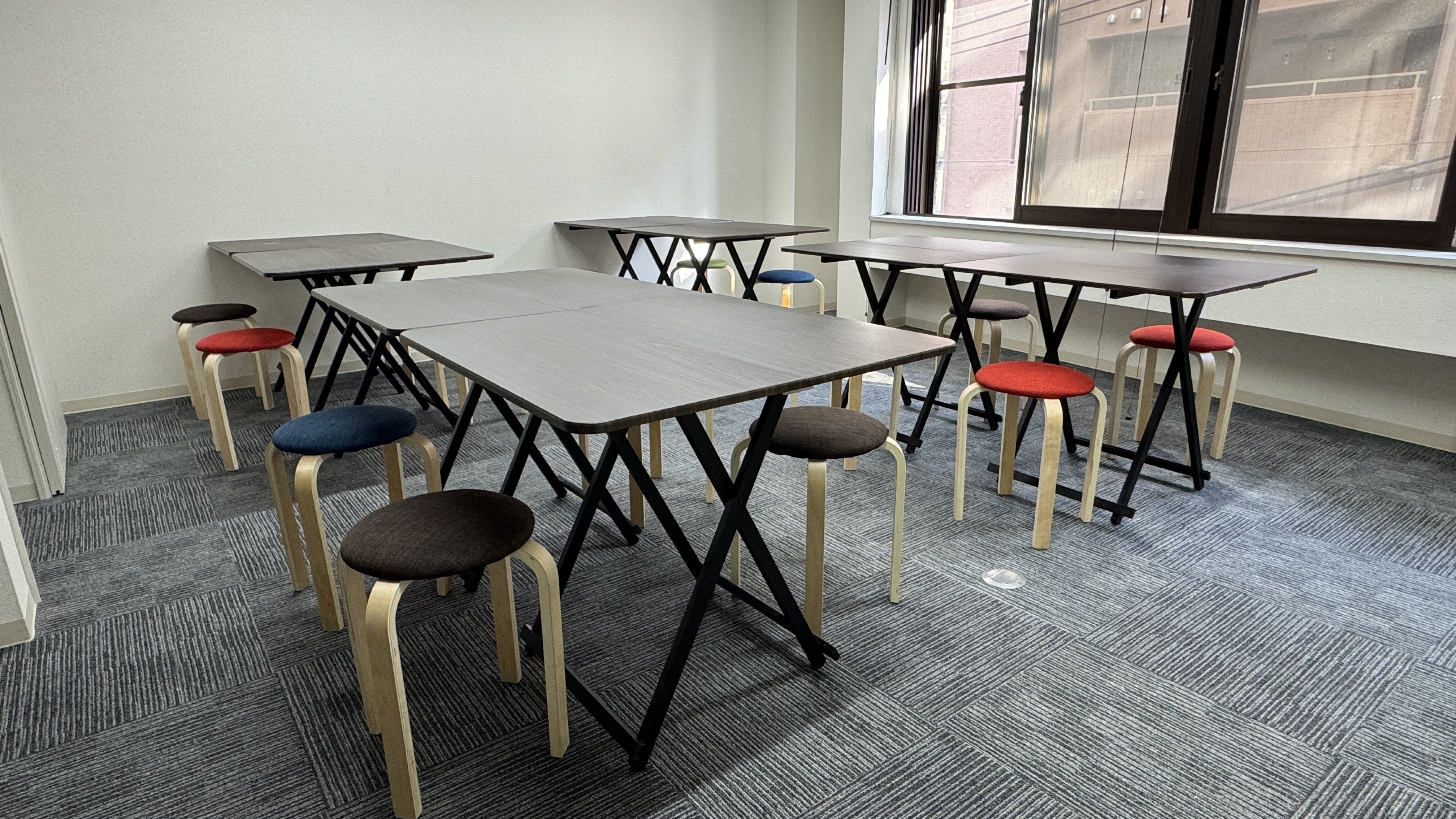 ①折りたたみ式イス&テーブルを採用!自由なレイアウトでイベントが楽しめます!