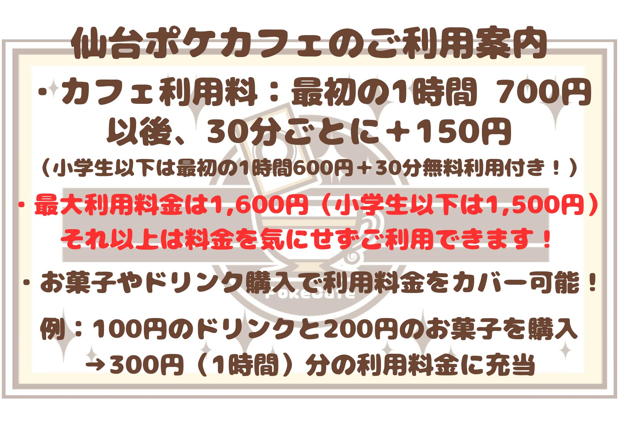 仙台ポケカフェの利用料金についてご説明いたします。