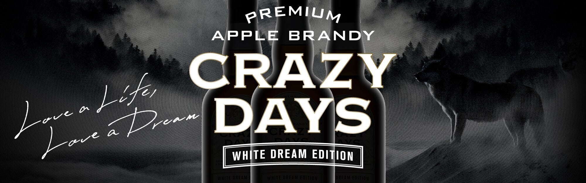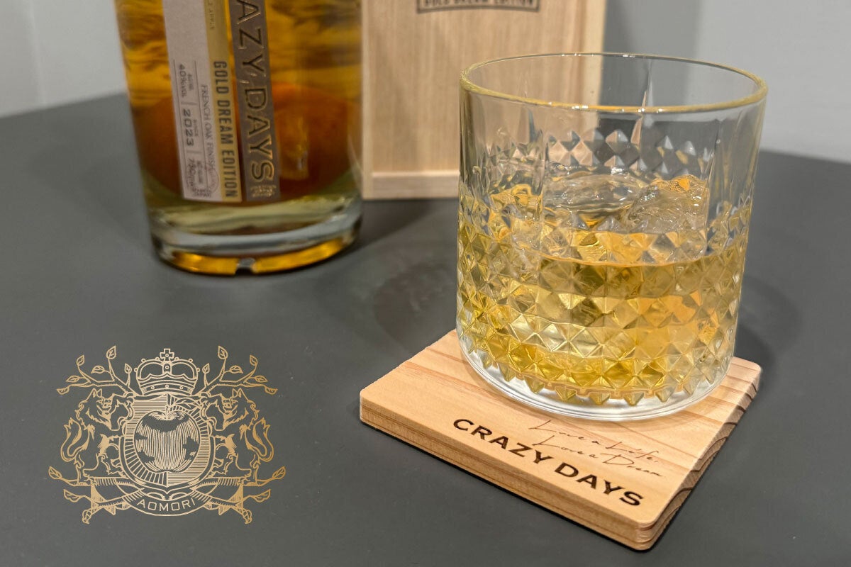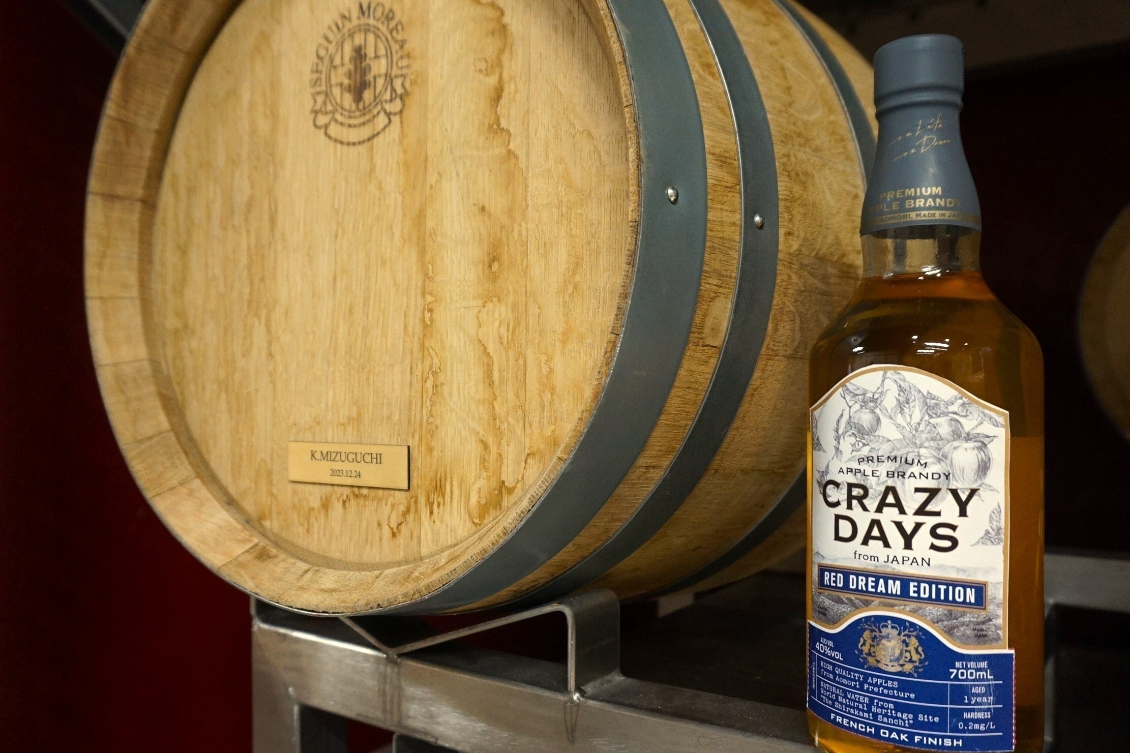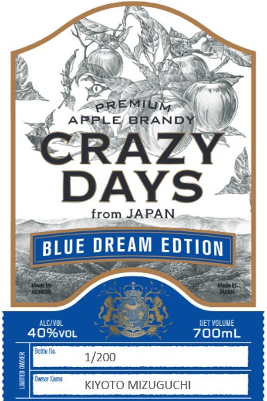 私たちは、アップルブランデーの名称を「CRAZY DAYS」(クレイジーデイズ)と名付けました。CRAZY DAYSとは「夢中な日々」という意味です。これは私たちが、これから世界を目指して夢中になって旅をすることを意味しており、そしてこのブランデーを飲まれる方も何かに夢中な人に飲んでいただきたい…。そんな思いを込めて名付けました。