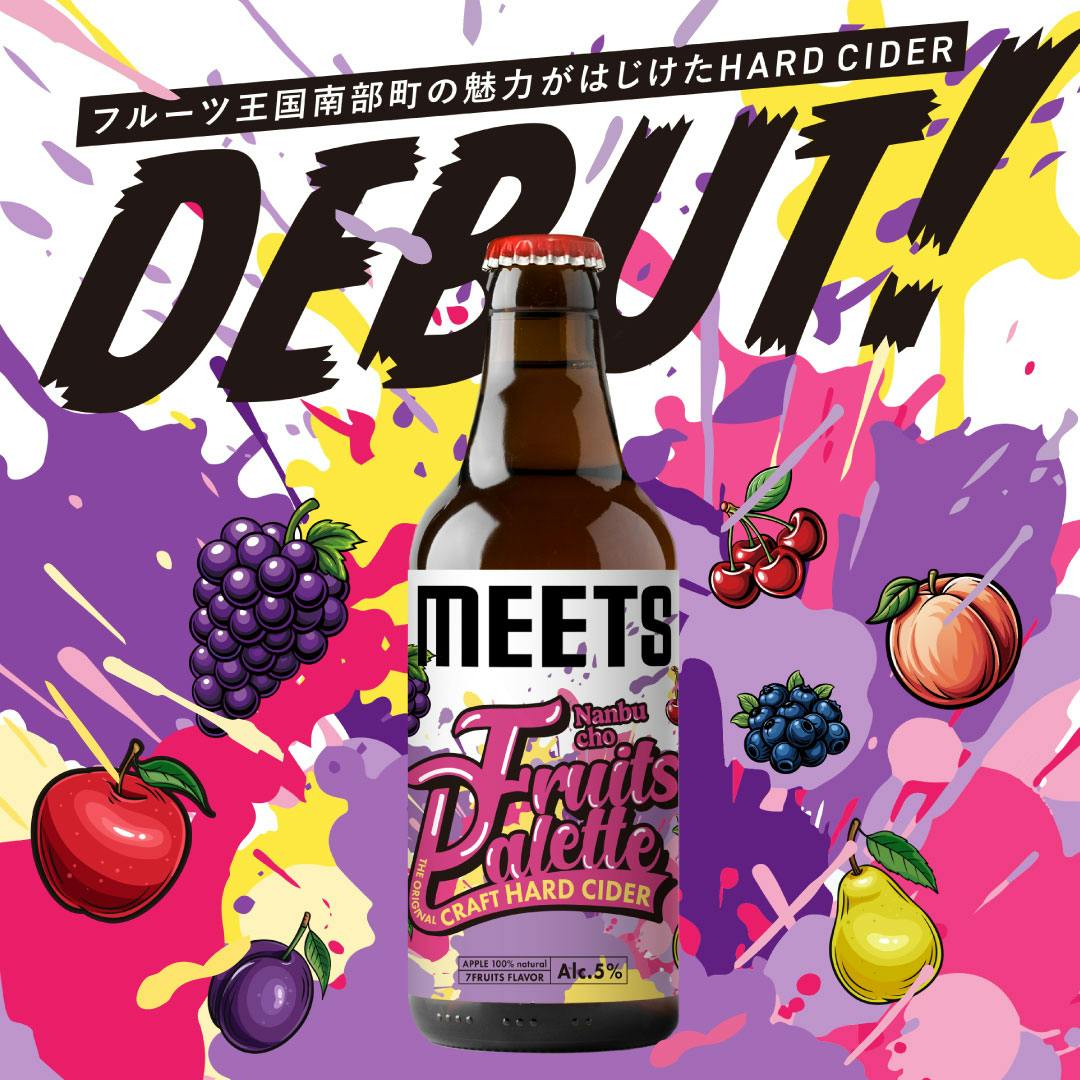 ⑦そして2024年12月、青森県南部町の7種類のフルーツをミックスしたシードル「MEETS南部町フルーツパレット」という商品をリリース!
