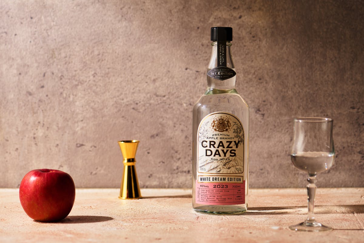 ⑨2024年1月、初めてリリースしたのが前回のクラファンで皆様にお世話になったアップルブランデー「CRAZY DAYS WHITE DREAM EDITION」が誕生。