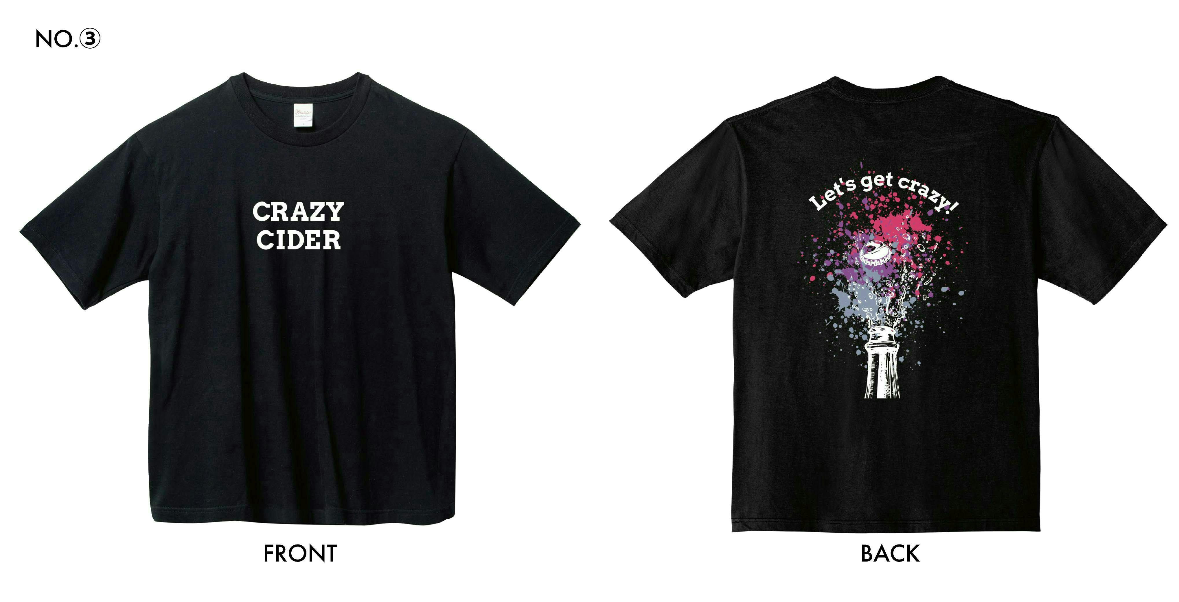 No.③ブラック地&ホワイト柄のCRAZY CIDER Tシャツ