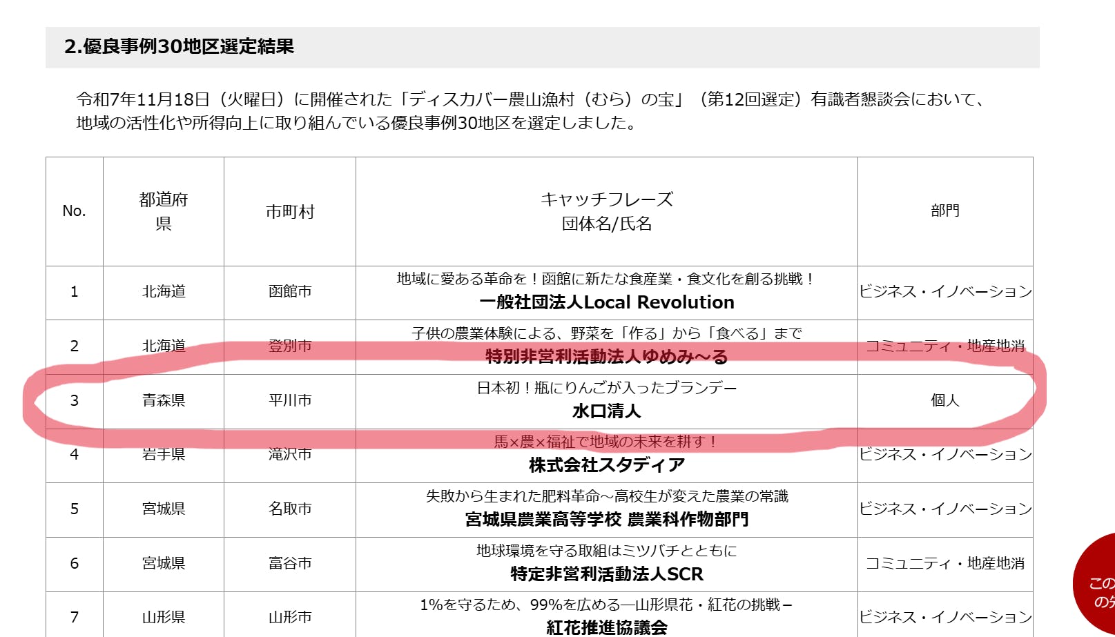 2025年12月19日に東京の農林水産省講堂において「ディスカバー農山漁村(むら)の宝」(第12回選定)の選定証授与式に行ってきます。