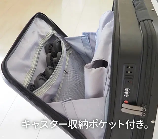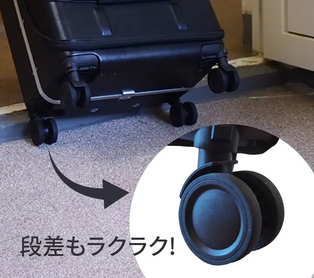 ・キャスターを取り外しにしたことで、機内持ち込みのために無理にキャスターを小さくする必要がなくなり、静かで段差もラクなキャスターが実現しました。・360度回転する4つのダブルキャスターで安定・快適な移動を実現。