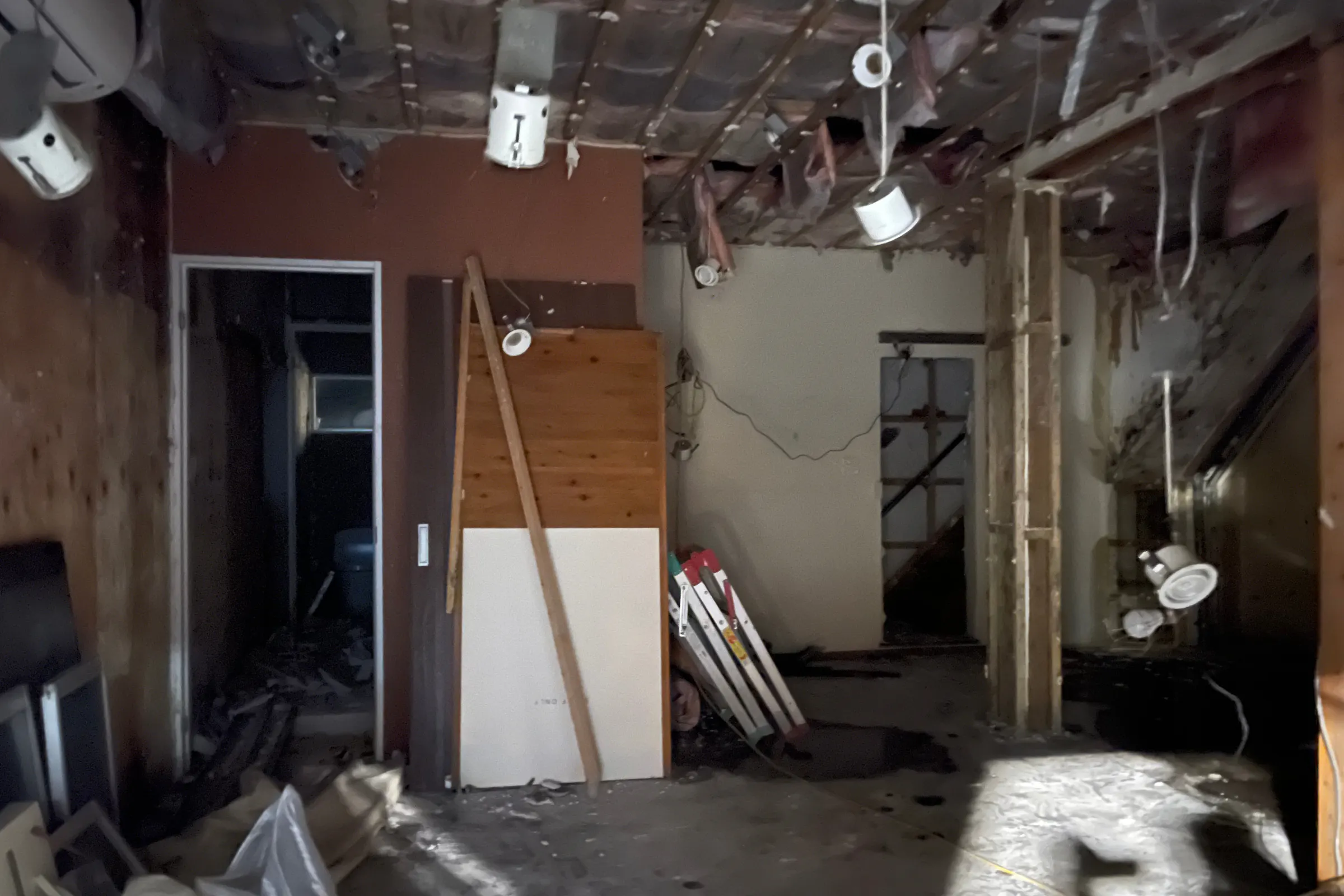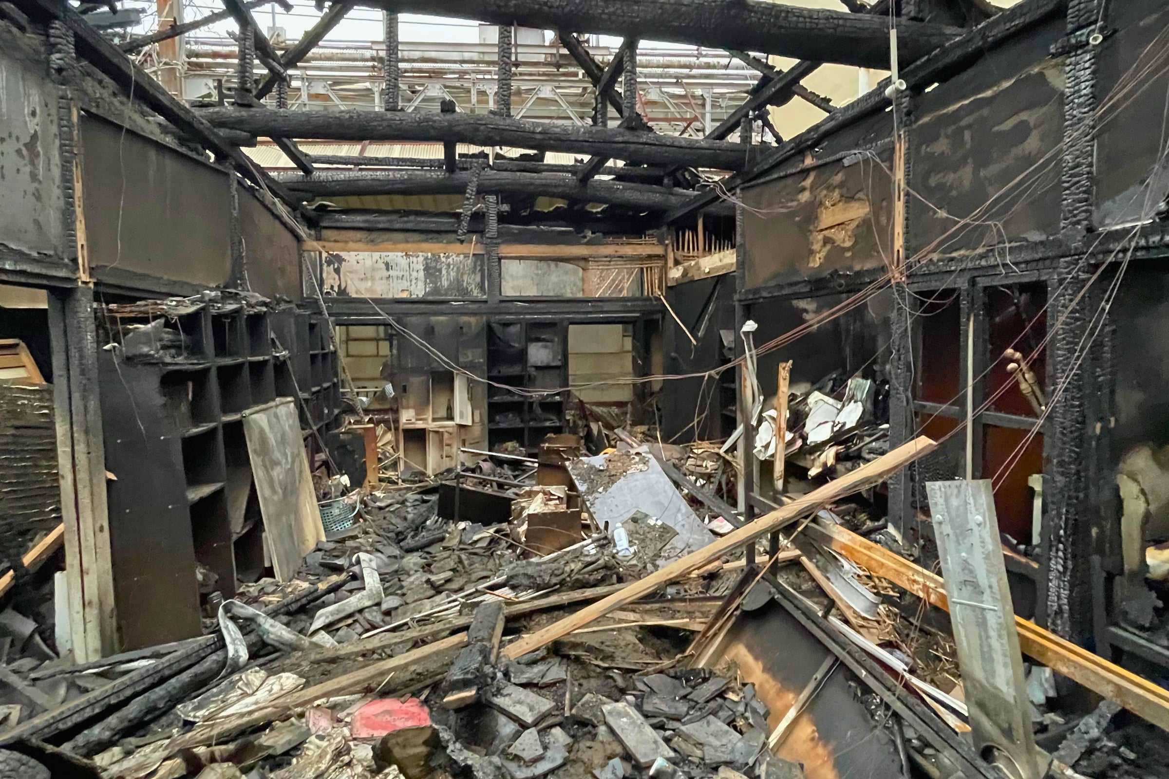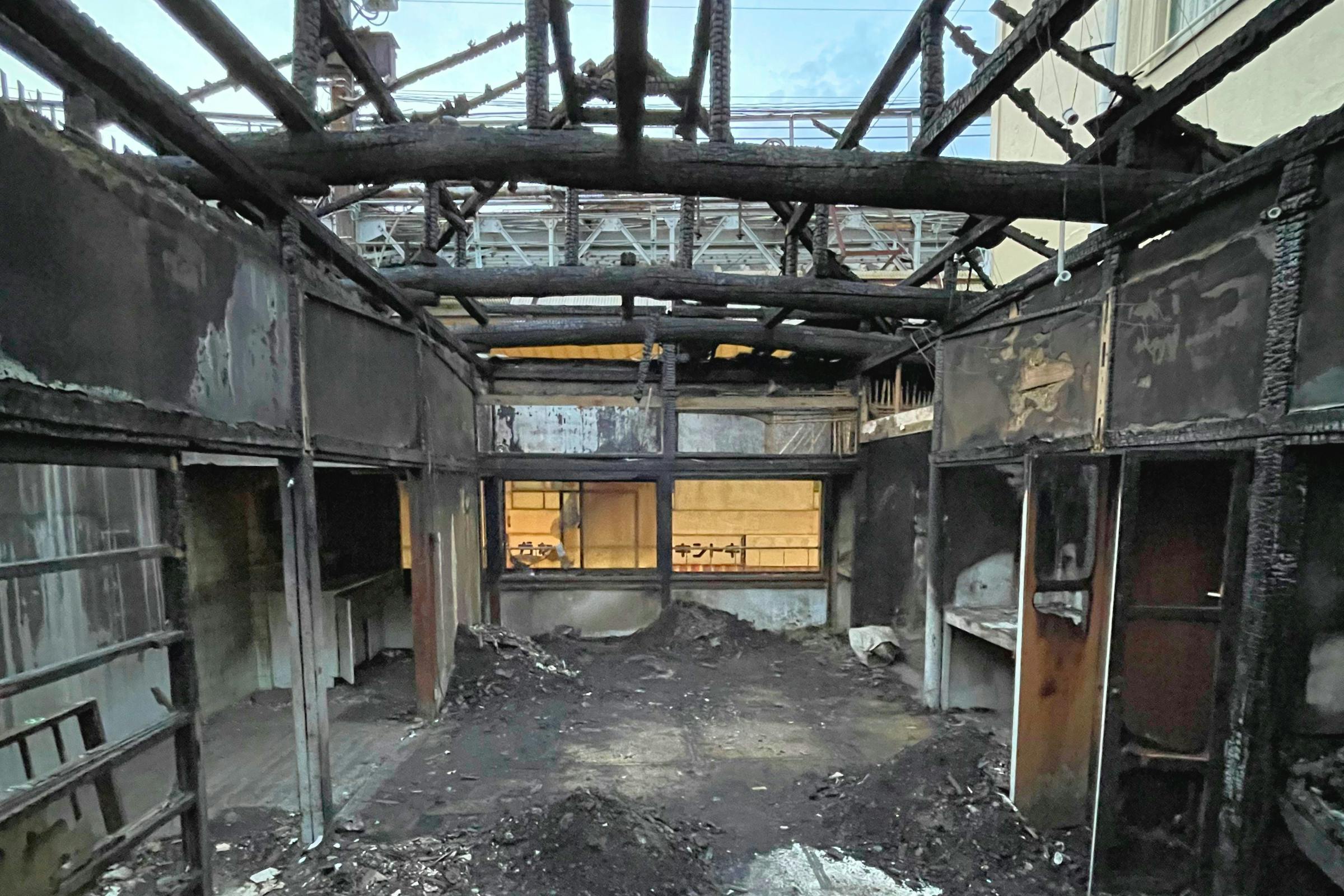 隣の店舗から出火した「もらい火事」で、8年前に初めて作った創業店舗が焼失しました。