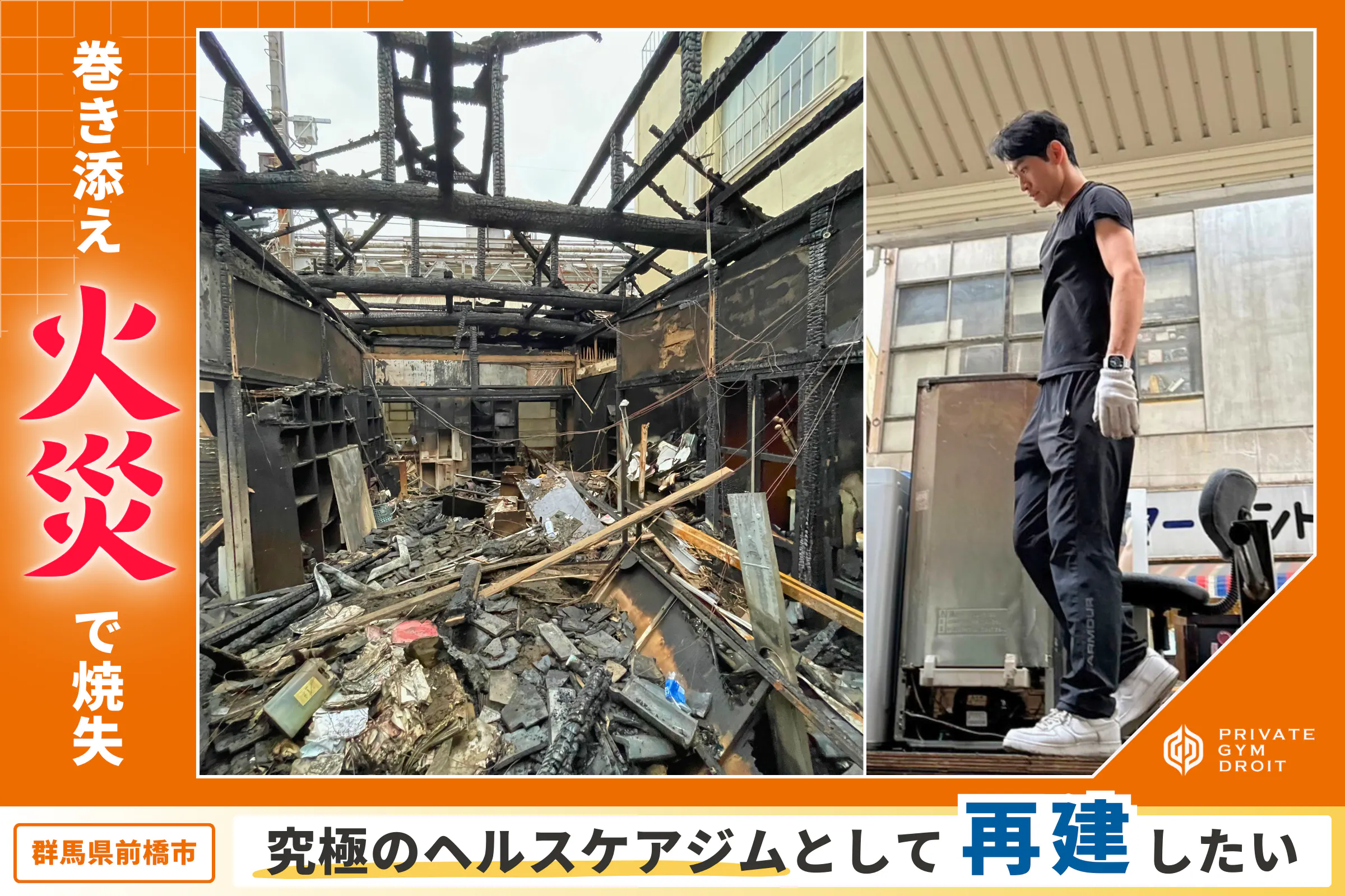このうち、2ヶ月前にリニューアルしたばかりの創業店舗「筋膜ストレッチ専門店」が、近隣店舗からの出火による火災で焼失。注ぎ込んだこだわりも8年間の思い出も全部詰まった店舗だったからこそ、全てが失われてしまった感覚に包まれて毎日涙を流す日々を送っていました。
