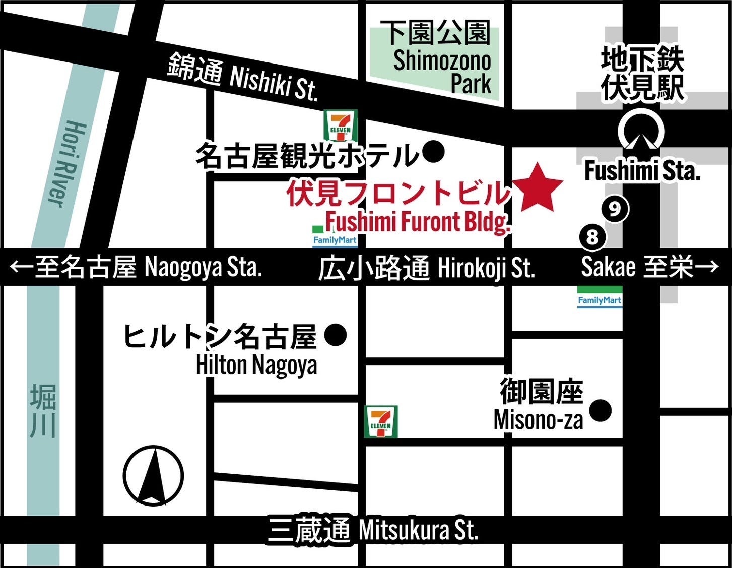 2025年2月、私たちのお店は名古屋駅からもアクセスの良い伏見エリアでオープンします。具体的には名古屋市営地下鉄伏見駅(東山線・鶴舞線)から徒歩2分、名古屋商科大学のすぐ隣にある伏見フロントビルの1Fです。
