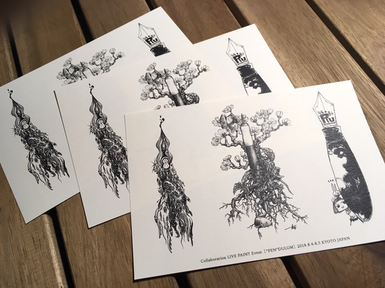 いつもプロジェクトを応援していただき、誠にありがとうございます。 プロジェクト期間の終了まで1ヶ月と少し、ライブペイント本番まではあと2週間を残すところとなりました。 達成率も64%まで来ましたが、サクセスにはもうひと伸びが必要です。 ご支援と情報拡散へのご協力、どうぞよろしくお願いします! さて、今回のライブペイントと3人展の期間中に「色紙プレゼント企画」を行うことが決定しました。 3名のアーティスト描き下ろしのイラストにサインが添えられた色紙(各アーティスト1枚ずつ)を、合計3名の方にプレゼントします。 それぞれ世界に1点しかないレアなアイテムですので、ぜひ奮ってご応募ください! 応募方法について: 3人展「いのちのふりこ」の開催期間中(7月31日〜8月12日)、会場のバックス画材2階[KAMIKOBO 紙工房]ギャラリーにて応募券を配布します。 そちらに氏名・住所などの必要事項を記入していただき、設置してあるボックスに投函して応募手続きは完了です。 ※応募券の郵送などは行っておりませんので、あらかじめご了承ください。 プレゼントの当選者は、こちらの活動報告ページで発表させていただきます。