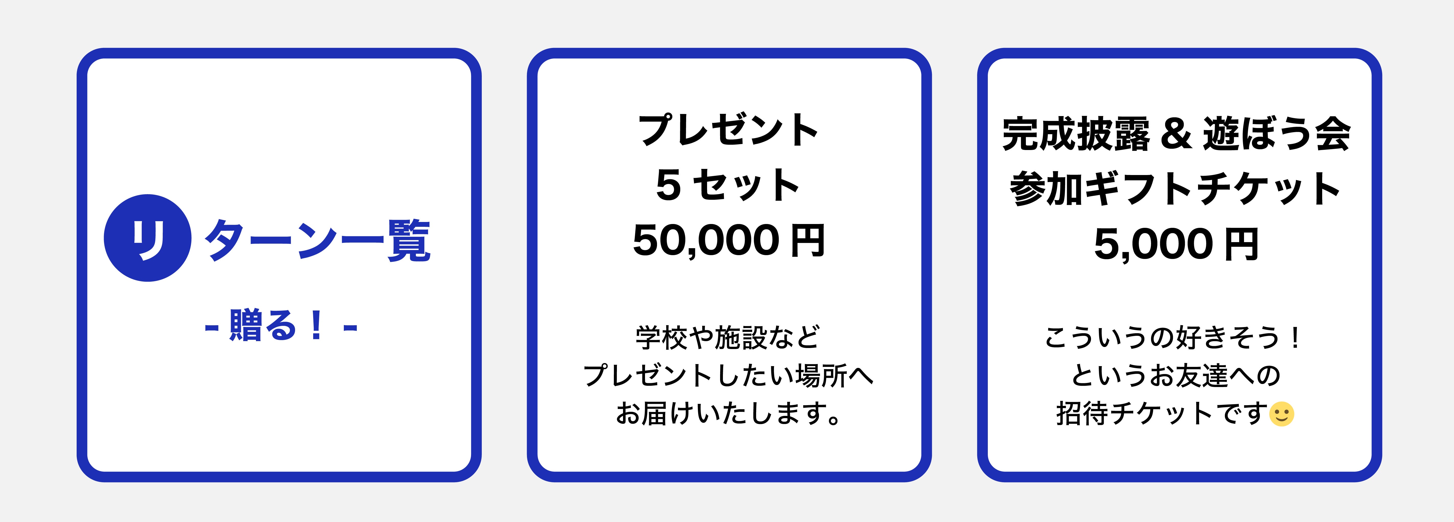 なお、リターンの紹介に使われている画像は現在開発中のものとなります。