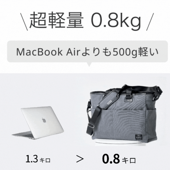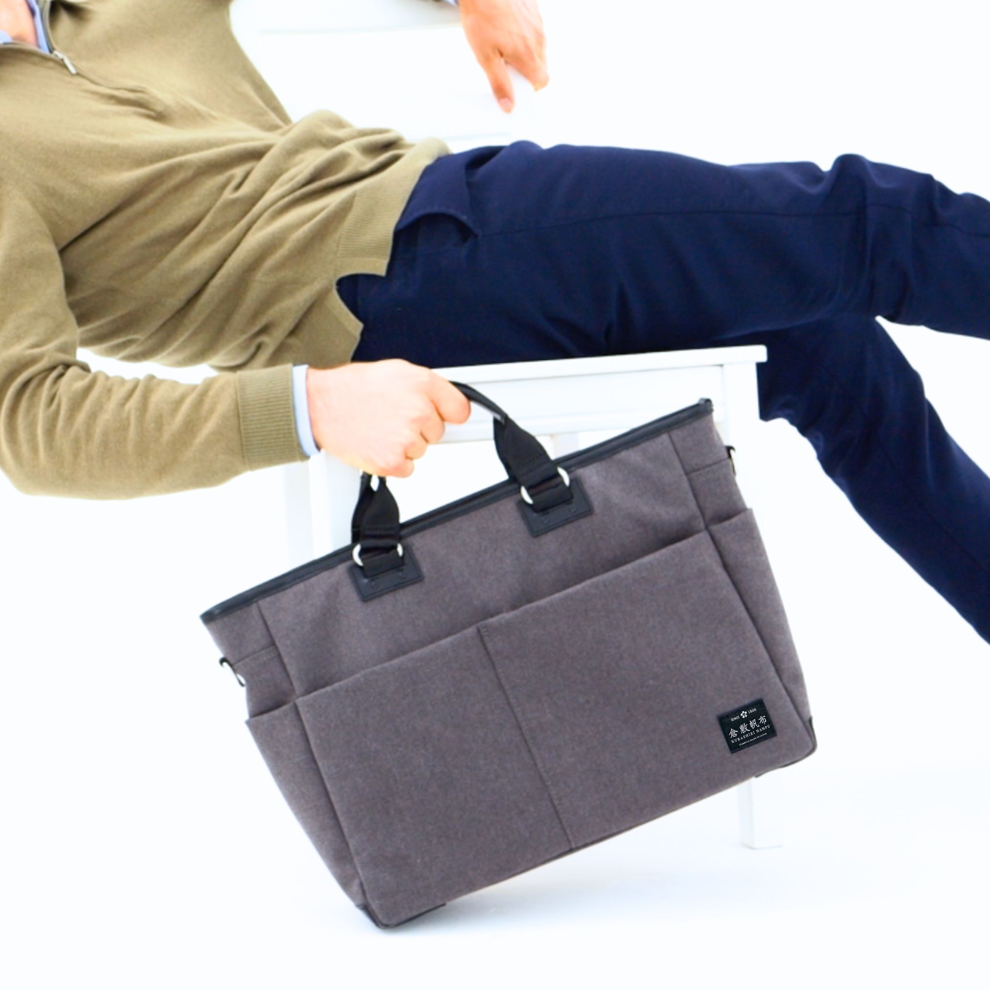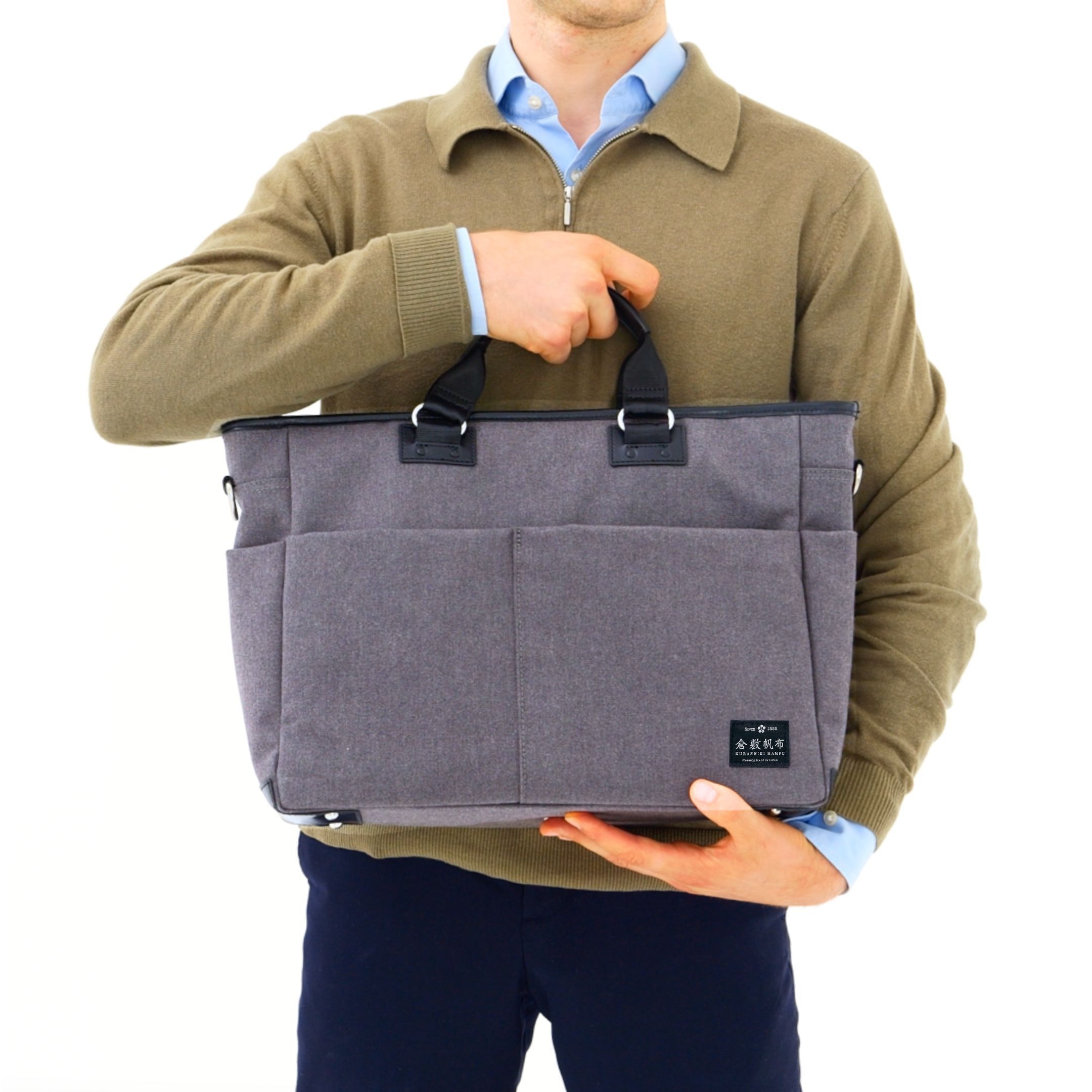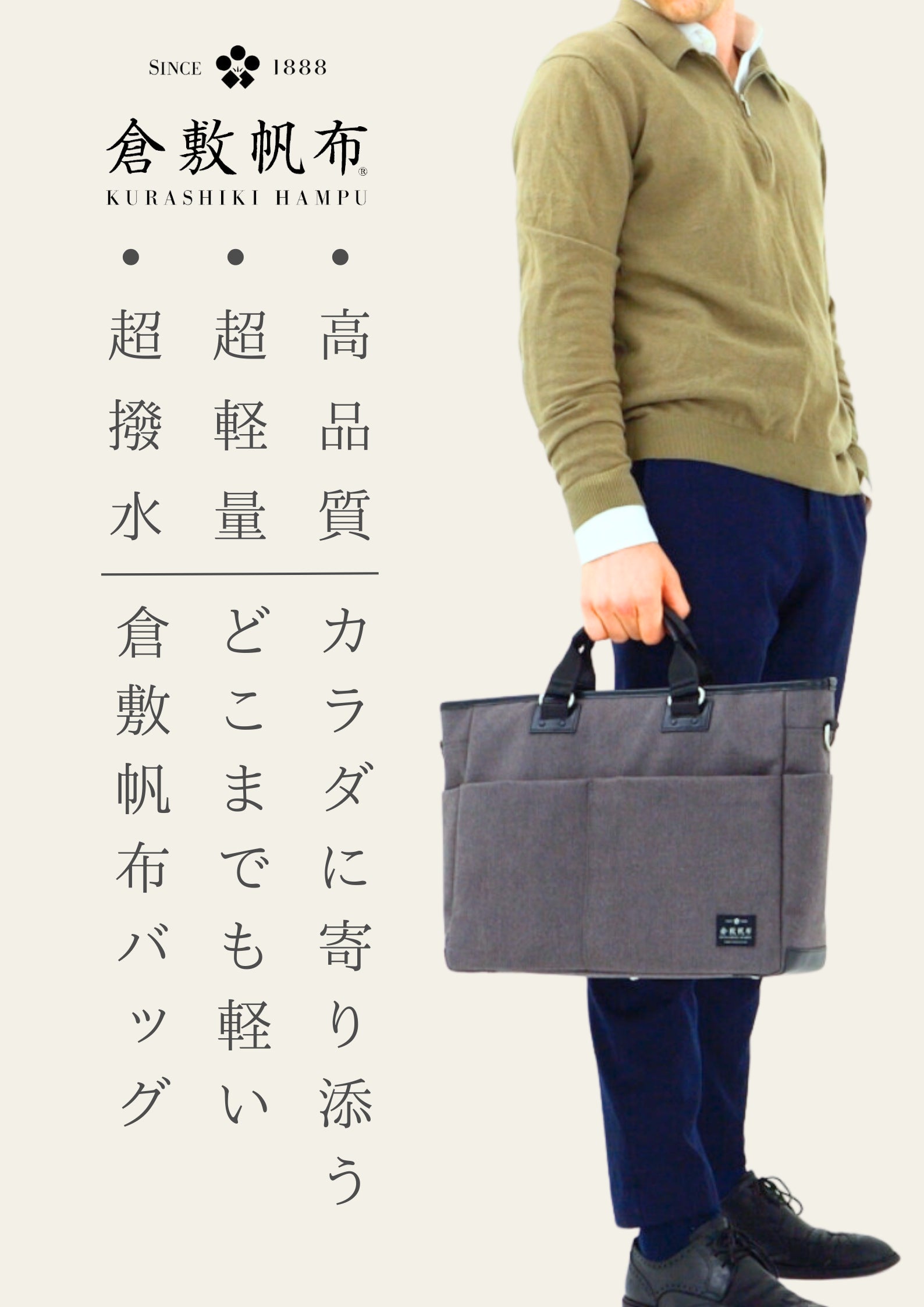 従来のビジネスバッグは、オフィスや特定の場所で使うことを想定して、多機能を重視して作られてきました。一方、倉敷帆布のモバイルバッグは、「カラダへの負担を、もっと軽くする」ように設計された超軽量の天然素材。