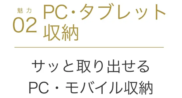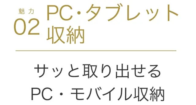 PC本体はもちろん、ガジェットもスッキリ。大きく開くデザインで、中身が一目瞭然。 必要なものを、瞬時に取り出せます。
