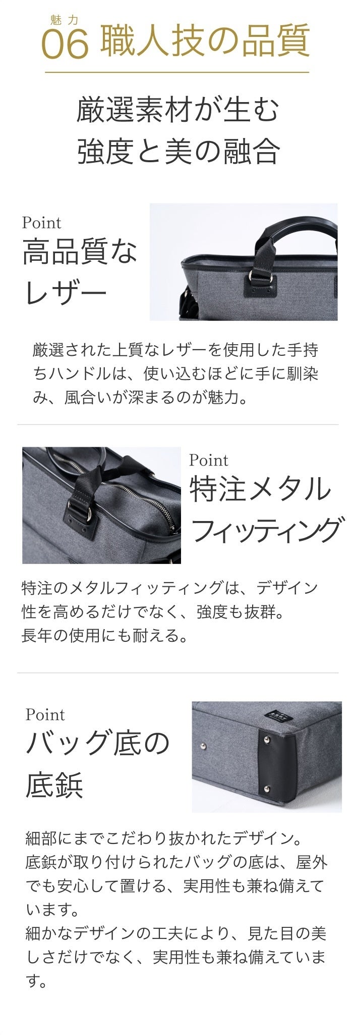 その伝統を受け継ぎつつ、現代のビジネスシーンにも合うスマートな機能美と洗練されたデザインを兼ね備えた新しいバッグを開発しました。