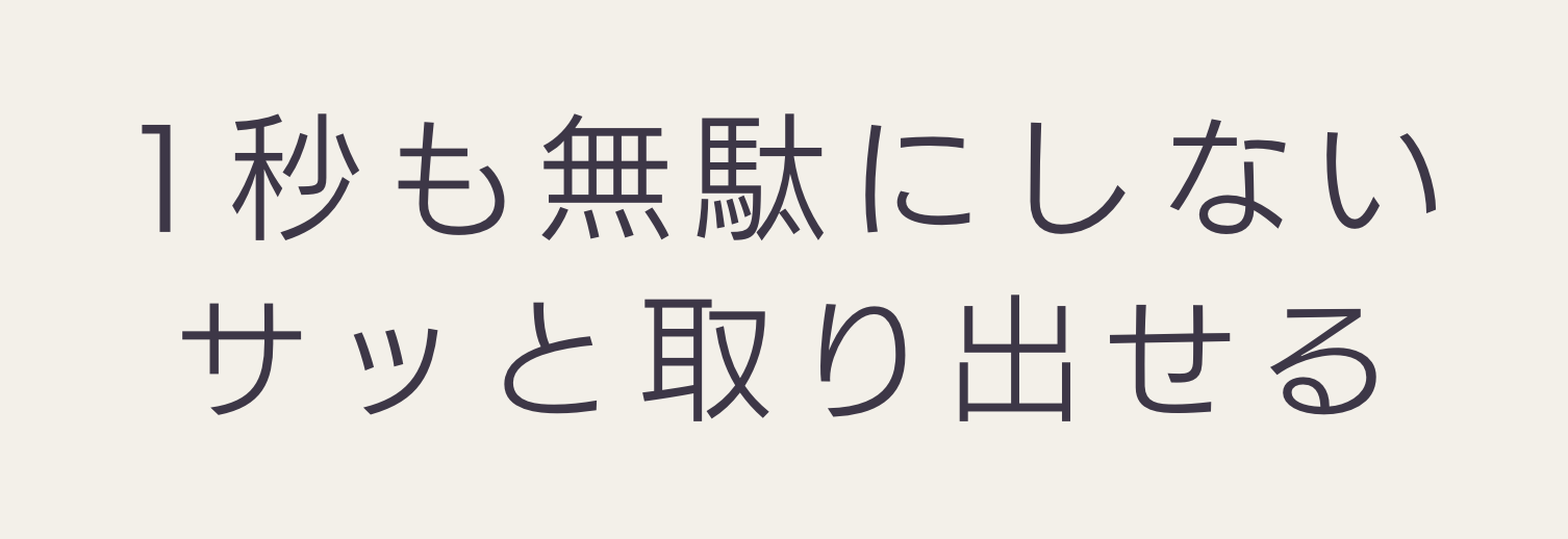 「必要なものを、必要な時に、サッと取り出す!」そんな快適な使い心地で、貴重な時間を1秒たりとも無駄にせず、最高のパフォーマンスを引き出せるのも負担ゼロを考えた結果です。