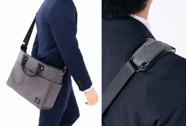 倉敷帆布のモバイルバッグは、「カラダへの負担を、もっと軽くする」をコンセプトに、移動や通勤中の肩や背中の負担を忘れさせるほどの快適さを実現しました。