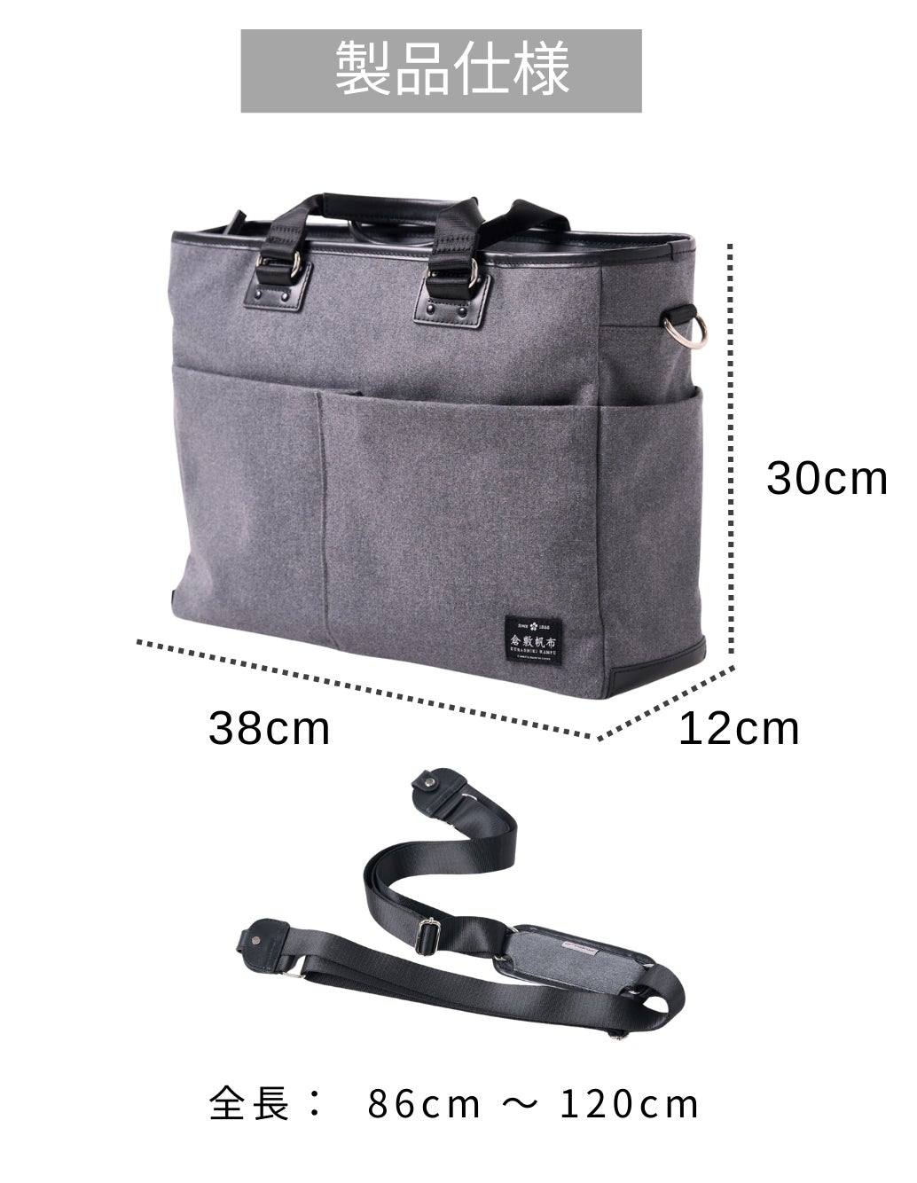 今回は、株式会社コアルーとのコラボレーションにより、倉敷帆布とコアルー5wayストラップを組み合わせた、特別なトートバッグを開発しました。高品質な綿帆布を使用し、グレー系のシンプルで洗練されたデザインは、男女問わず使える仕上がりです。さらに、5wayストラップで、様々なシーンで活躍する多機能バッグとなっています。
