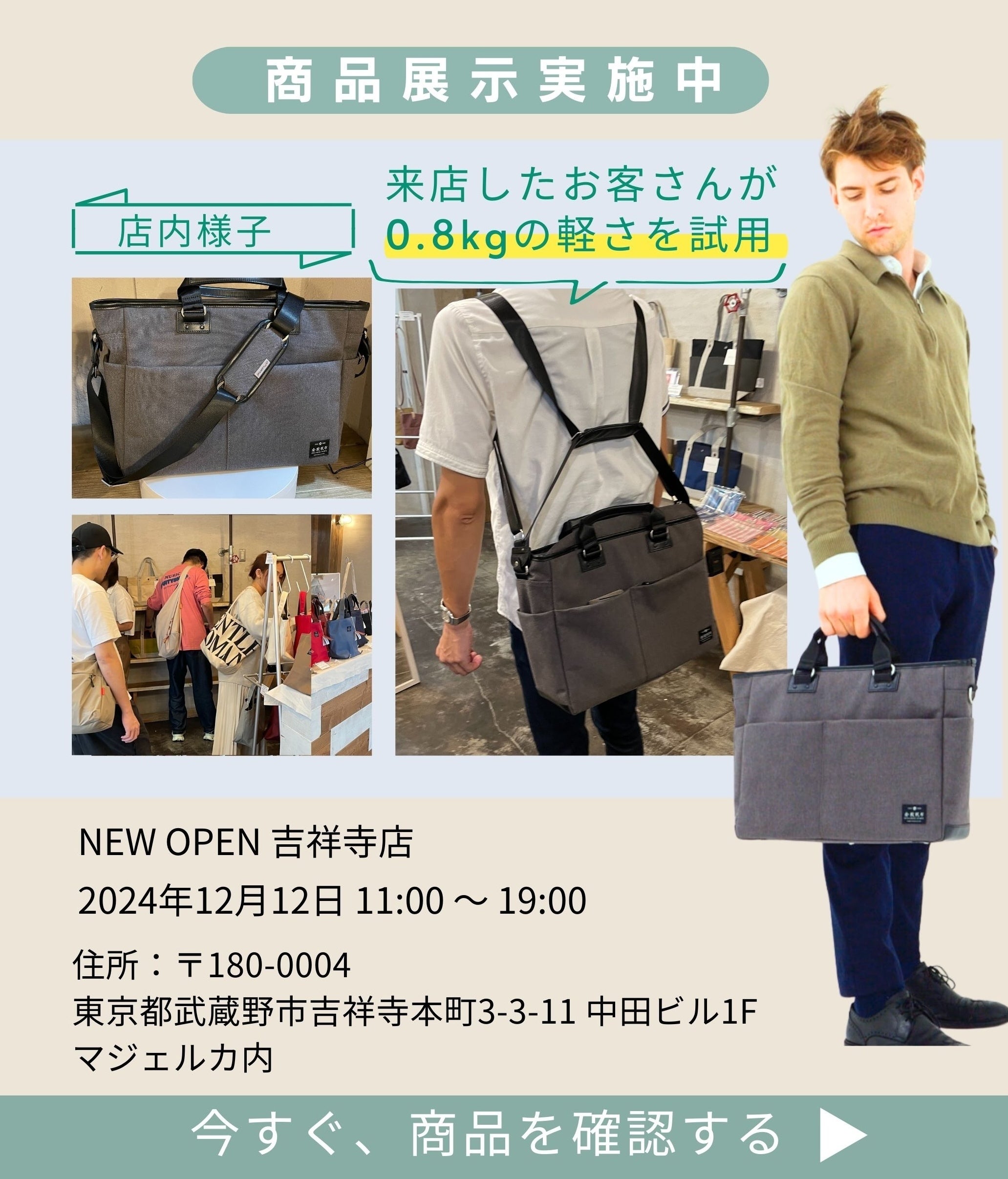 モバイルバッグを、見て、触って、体感できるチャンスです。驚きの軽さ、使いやすさ、そして洗練されたデザイン。 実際に手に取って、その魅力を体感してみてください。熟練の職人が手掛けた、こだわりの逸品を、ぜひこの機会にご覧ください。スタッフ一同、心よりお待ちしております。