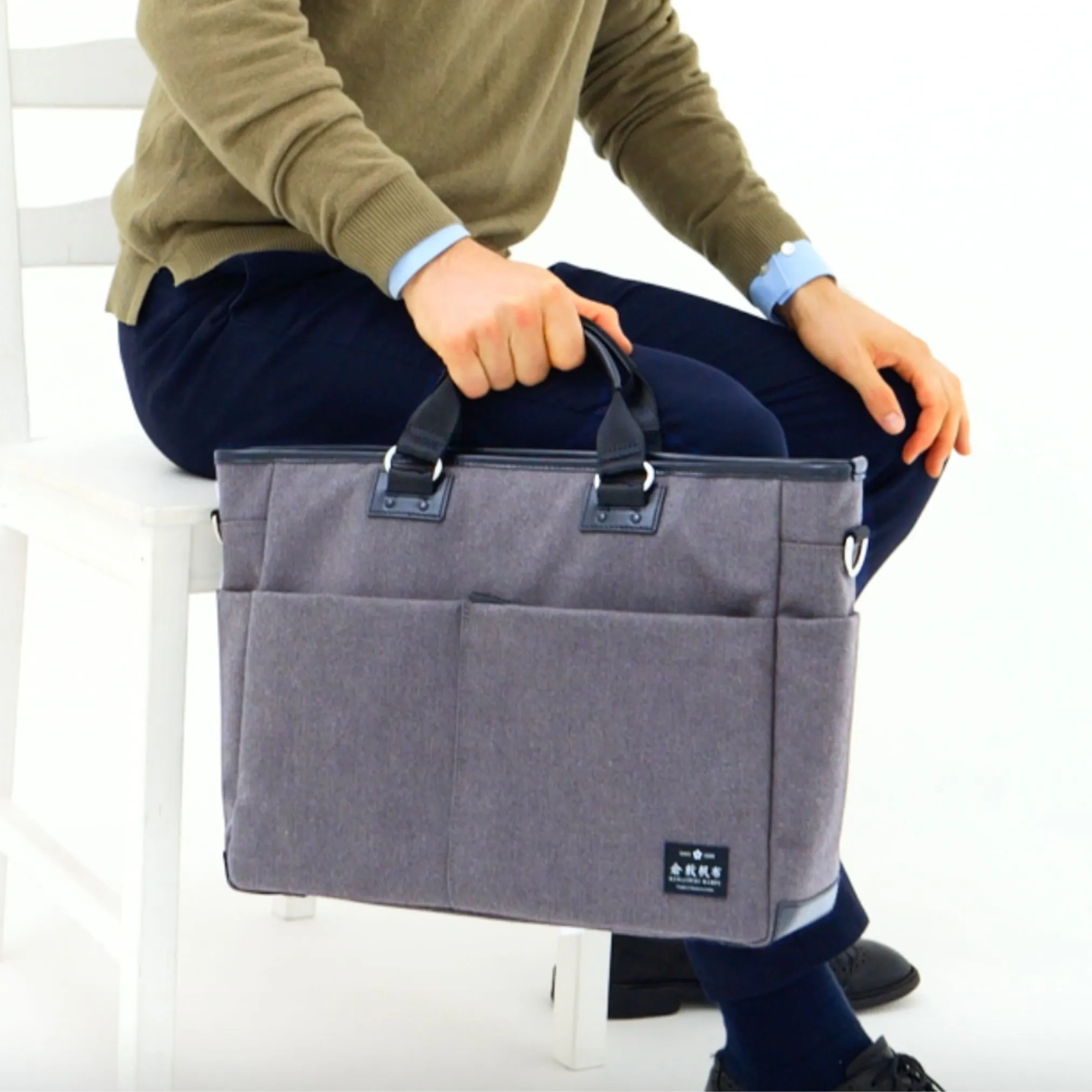 近年、ビジネスシーンでも天然素材が注目されています。その背景には、環境への配慮や、心身のリラックス効果など、様々な理由があります。私たち倉敷帆布は、長年の経験とモバイルワーク時代のビジネスパーソンの徹底的なニーズ調査から、「どんなシーンでも使いやすい」がキーワードだと確信しました。その答えとして、使いやすさを追求した大容量の収納スペースと機能的なポケット配置、軽量で丈夫な天然素材、そしてビジネスシーンからプライベートまで幅広く使えるシンプルなデザインを融合させたバッグを開発しました。このバッグは、プロフェッショナルな印象を与えながら、忙しい日々をスマートにサポートします。そして、天然素材ならではの風合いが、あなたのビジネススタイルにワンランク上の洗練をもたらします。