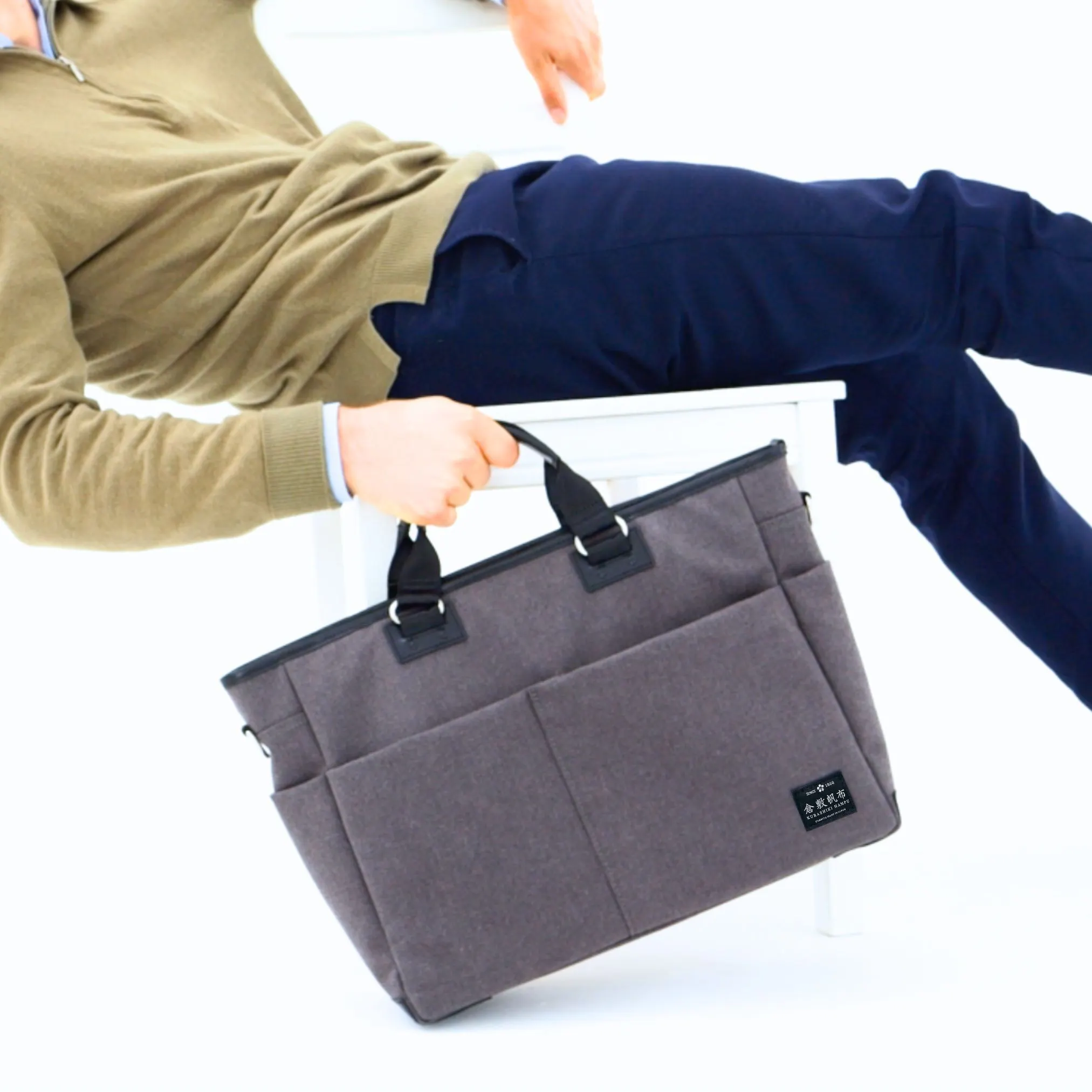 今回は、株式会社コアルーとのコラボレーションにより、倉敷帆布とコアルー5wayストラップを組み合わせた、特別なトートバッグを開発しました。高品質な綿帆布を使用し、グレー系のシンプルで洗練されたデザインは、男女問わず使える仕上がりです。さらに、5wayストラップで、様々なシーンで活躍する多機能バッグとなっています。