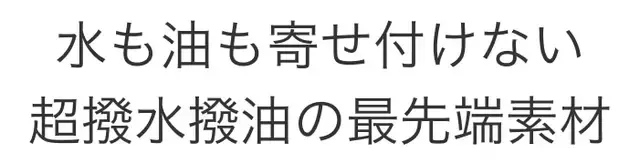 水だけでなく油、醤油、コーヒー、ワインなどの液体もはじく優れた撥水・撥油性能。