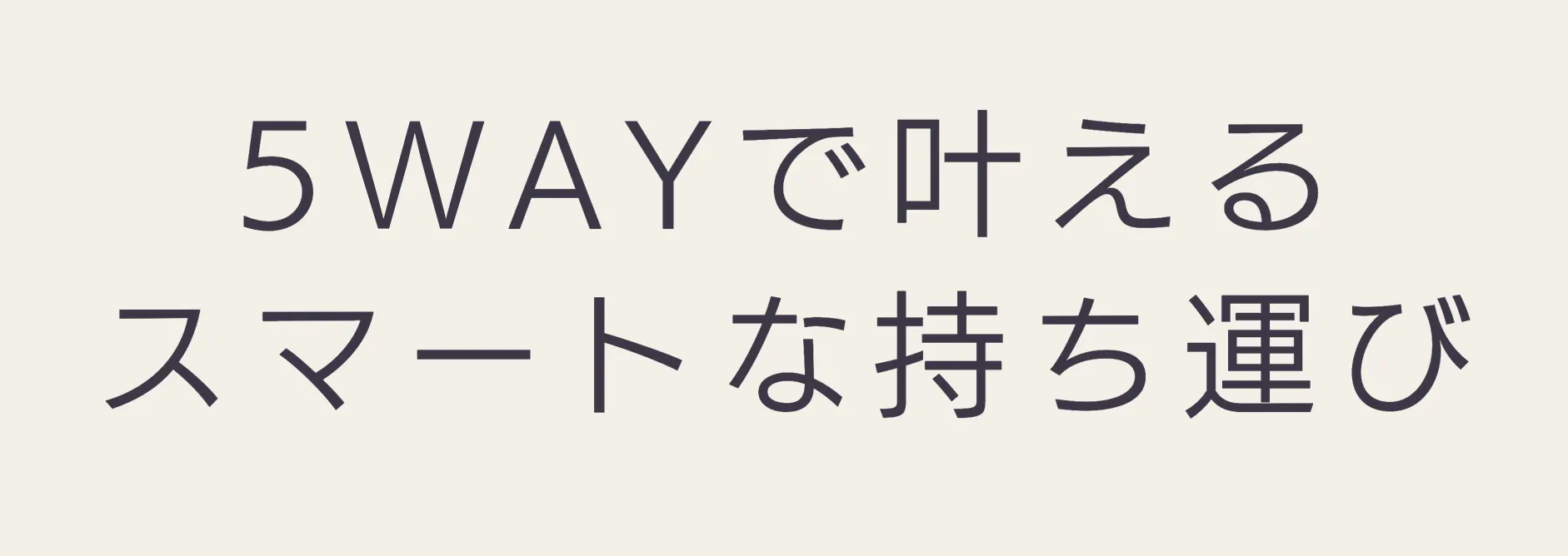 肩掛け・斜め掛け・リュック・手持ち・キャリーオンに対応し、人間工学に基づいた設計で、荷物の重さを分散し、肩や腰への負担を軽減します。