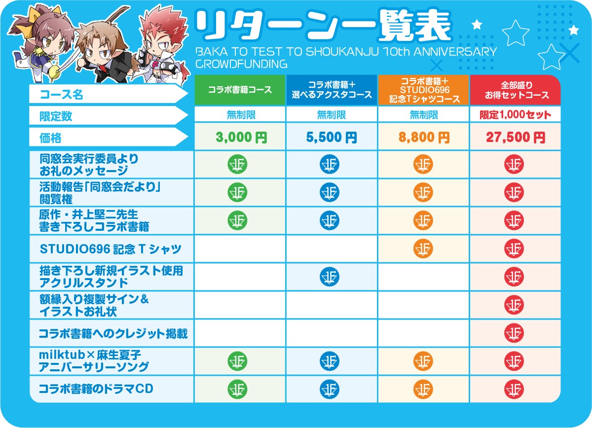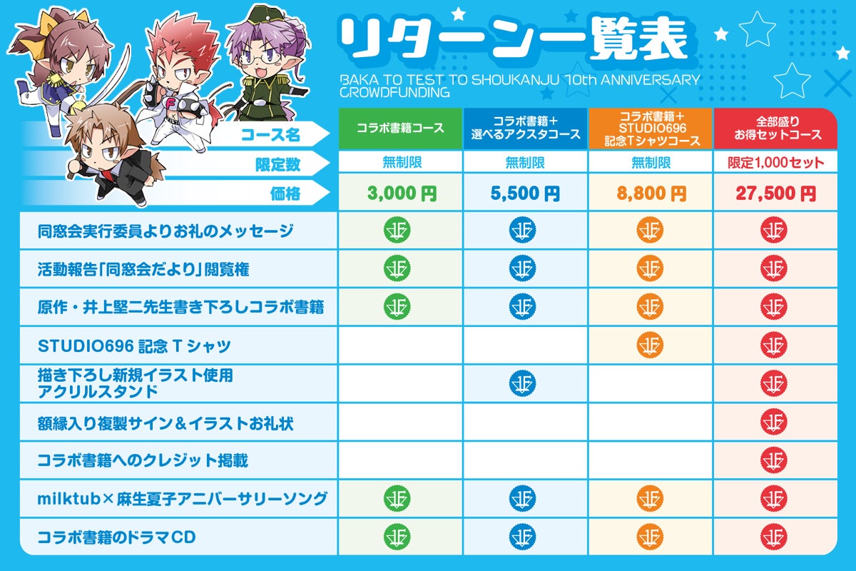 さらにクラウドファンディングにバカテスの「召喚」を用いて調達金額に応じて様々なゲストが「召喚」され、さらにプロジェクトへ支援された方への返礼品もアップデート!