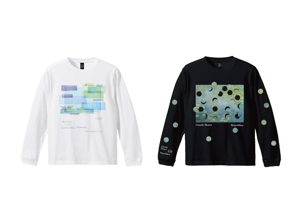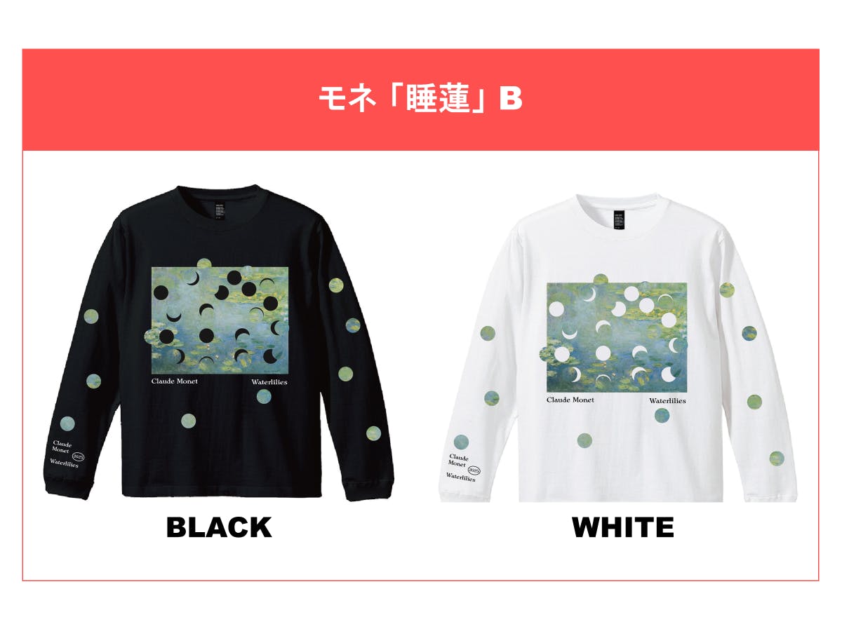 水面に浮かぶ睡蓮たちは、丸い形に切り取られてシャツの袖に散らばっています。絵の見方を別角度で楽しめるデザインです。