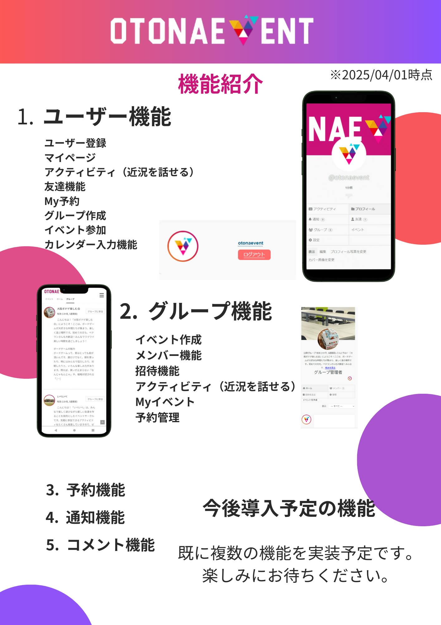 ※実装予定機能についてはOTONAEVENT公式サイトにて発表いたします。