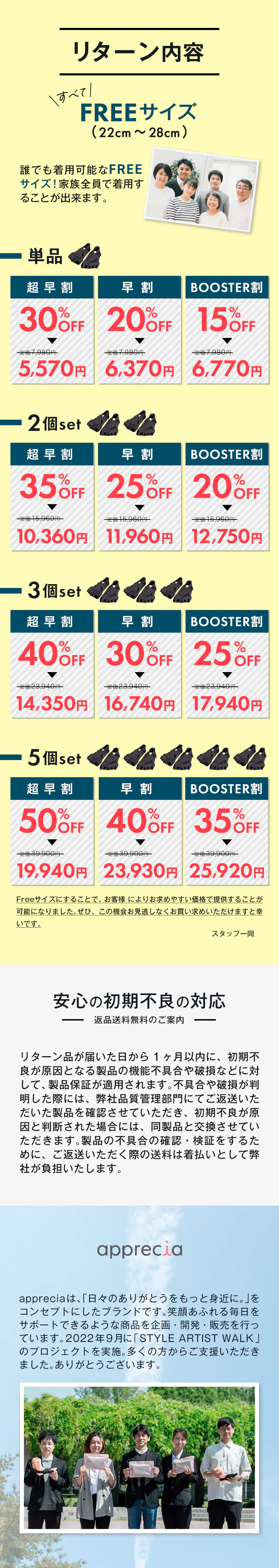 単品/2個セット/3個セット/5個セット、それぞれ超早割・早割・BOOSTER割にてご用意しています。