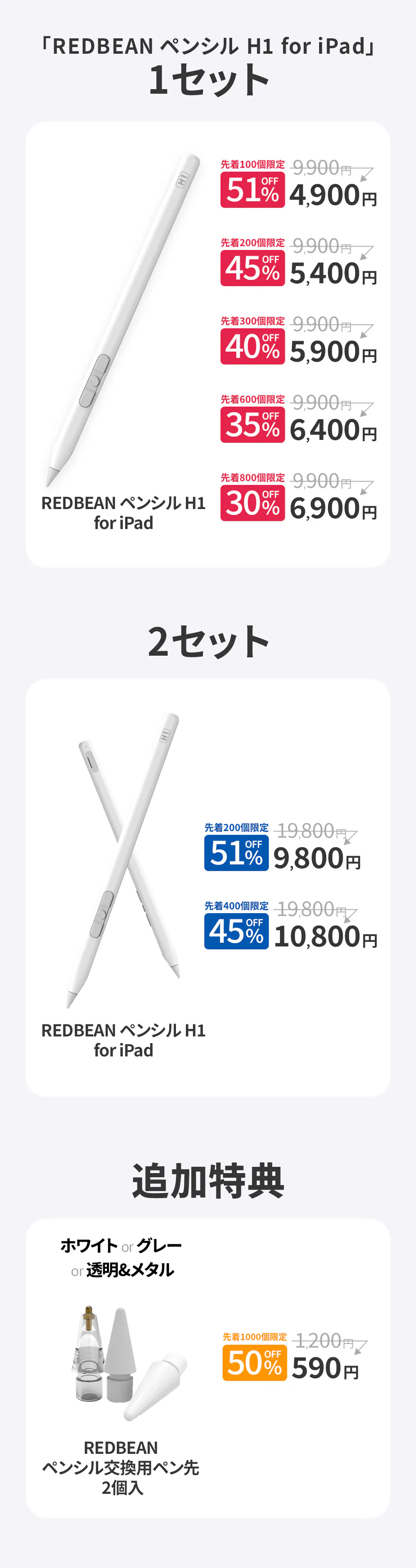 ※追加特典は、メインリターンである「ペンシルH1」とのセット購入時にご利用いただける特典となっております。そのため、単品でのご購入には対応しておりません。何卒ご了承くださいませ。