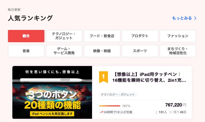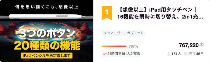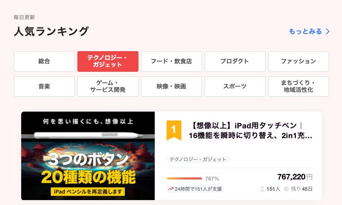 また、人気ランキングにおいて、総合1位、テクノロジー・ガジェット部門で1位に選出されました!