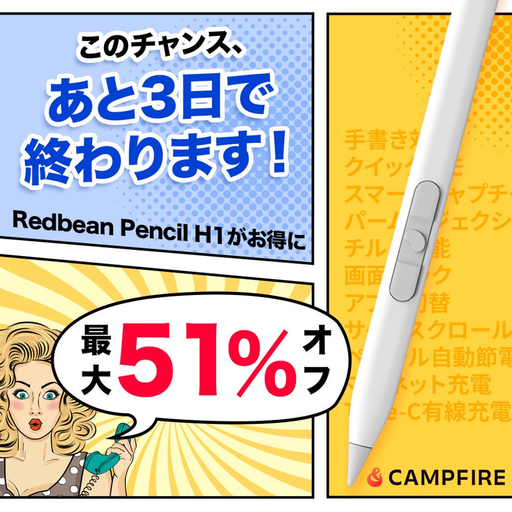 ご支援いただいている皆さまへいつも温かい応援をありがとうございます!「Redbean Pencil H1」のクラウドファンディングは、いよいよあと3日で募集終了となります。ここまで多くのご支援をいただき、本当に感謝しております。まだご検討中の方がいらっしゃいましたら、ぜひこの機会にご参加いただければ嬉しいです!最後までどうぞよろしくお願いいたします!REDBEAN