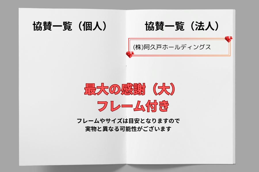 5.ー法人様向けー 【社名掲載 最大の感謝(大フレーム付)】+【入場者からのメッセージ】