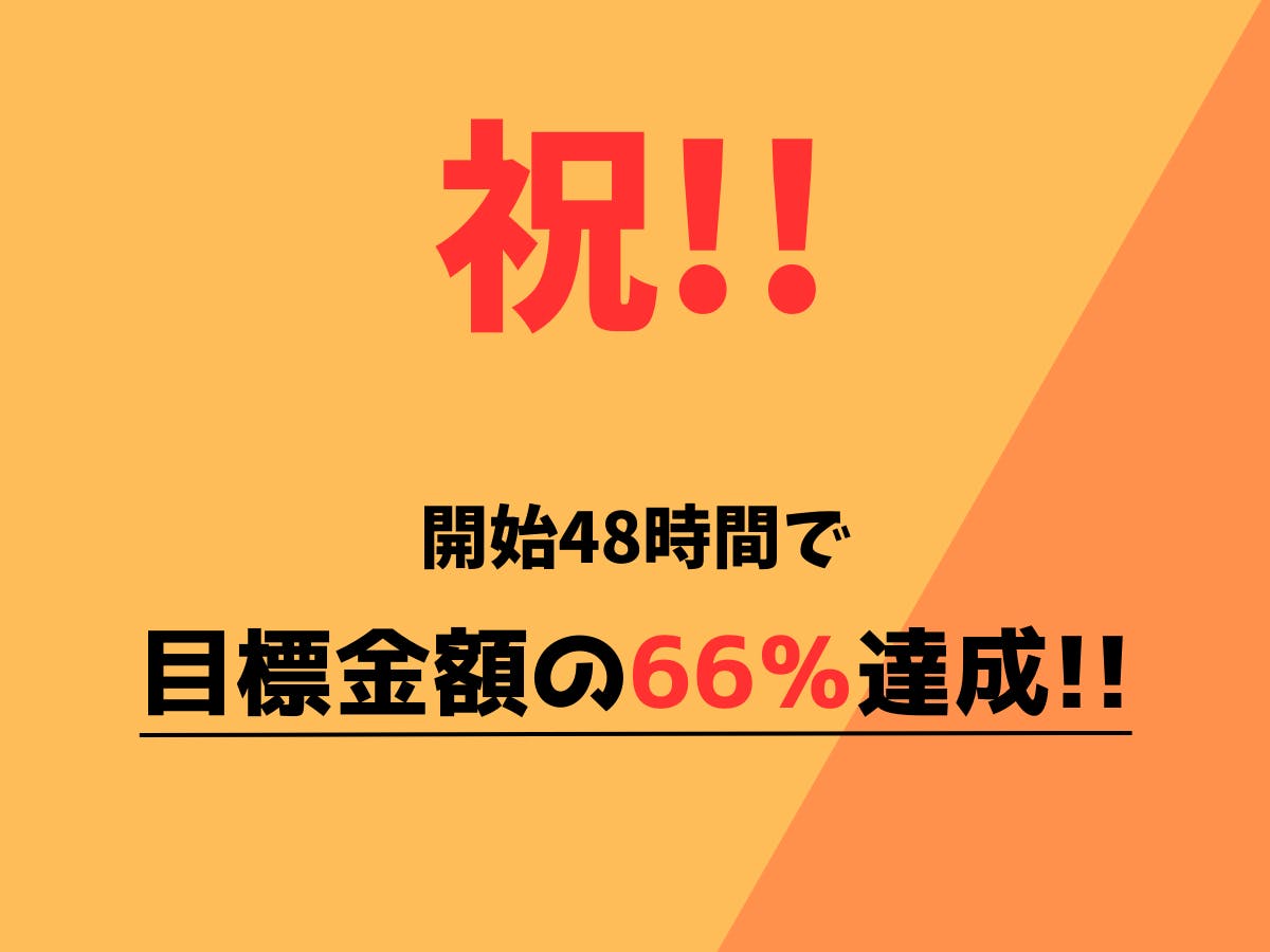 皆様のおかげで、クラウドファンディング開始からわずか2日で「目標金額の66%」を達成することができました!