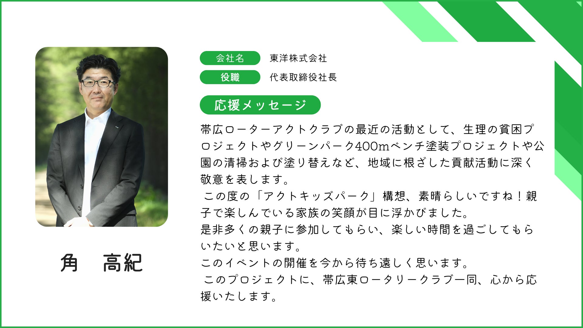 今回の「アクトキッズパーク」をそのきっかけの一つにしたいと思っております。