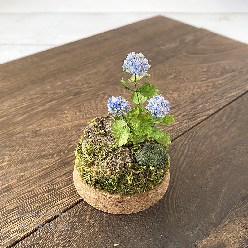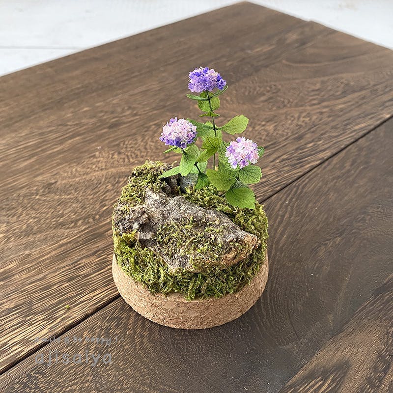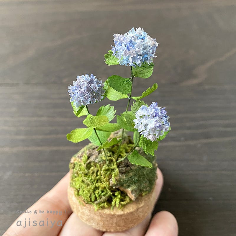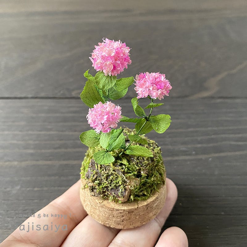 このミニチュアあじさいは、すべて本物の植物を原料に作られています。