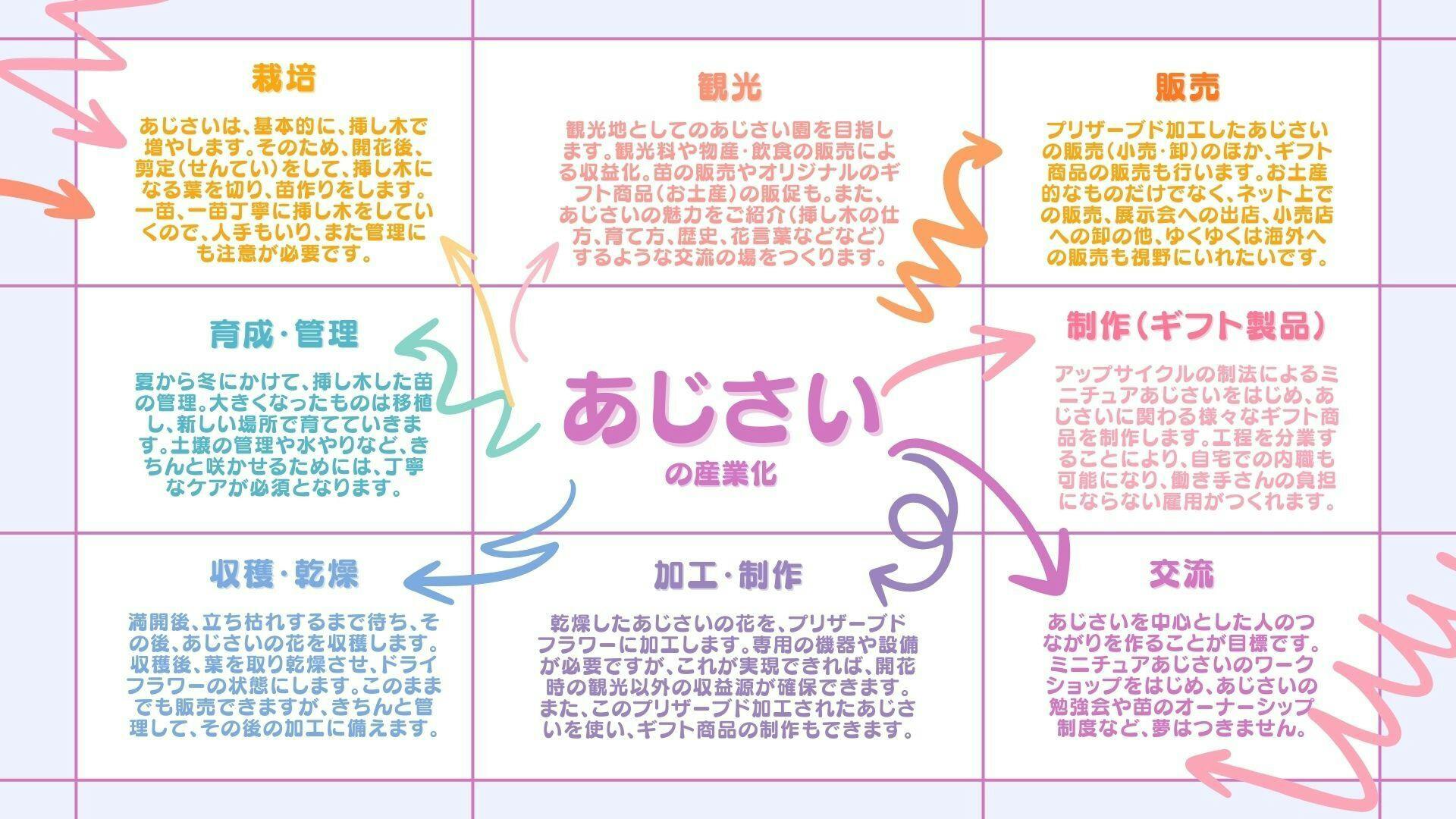 簡単言いますと「あじさいを中心とした産業の創出」