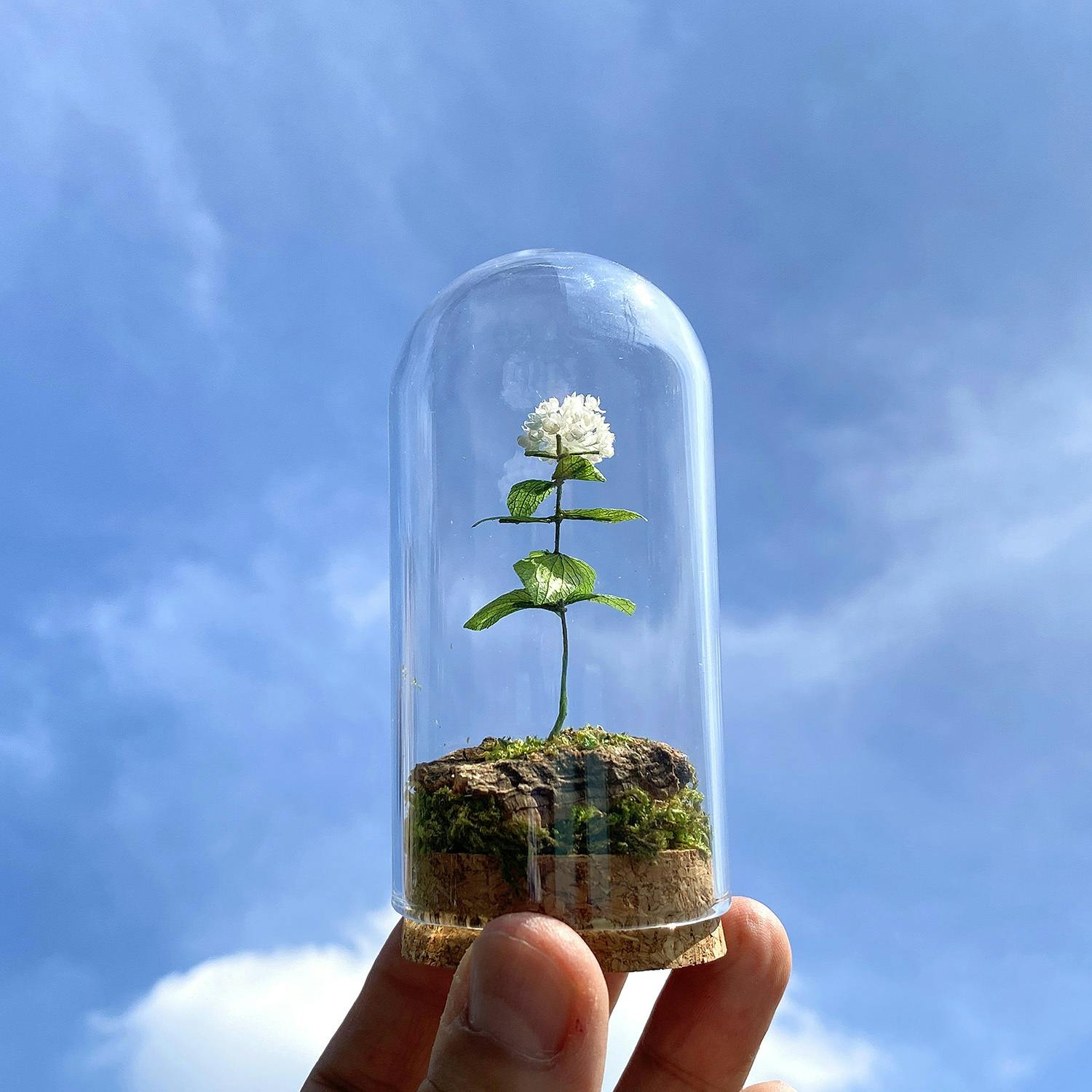 【 ミニチュアあじさい アナベル 1輪 Haconiwa(ガラスケースタイプ) 】