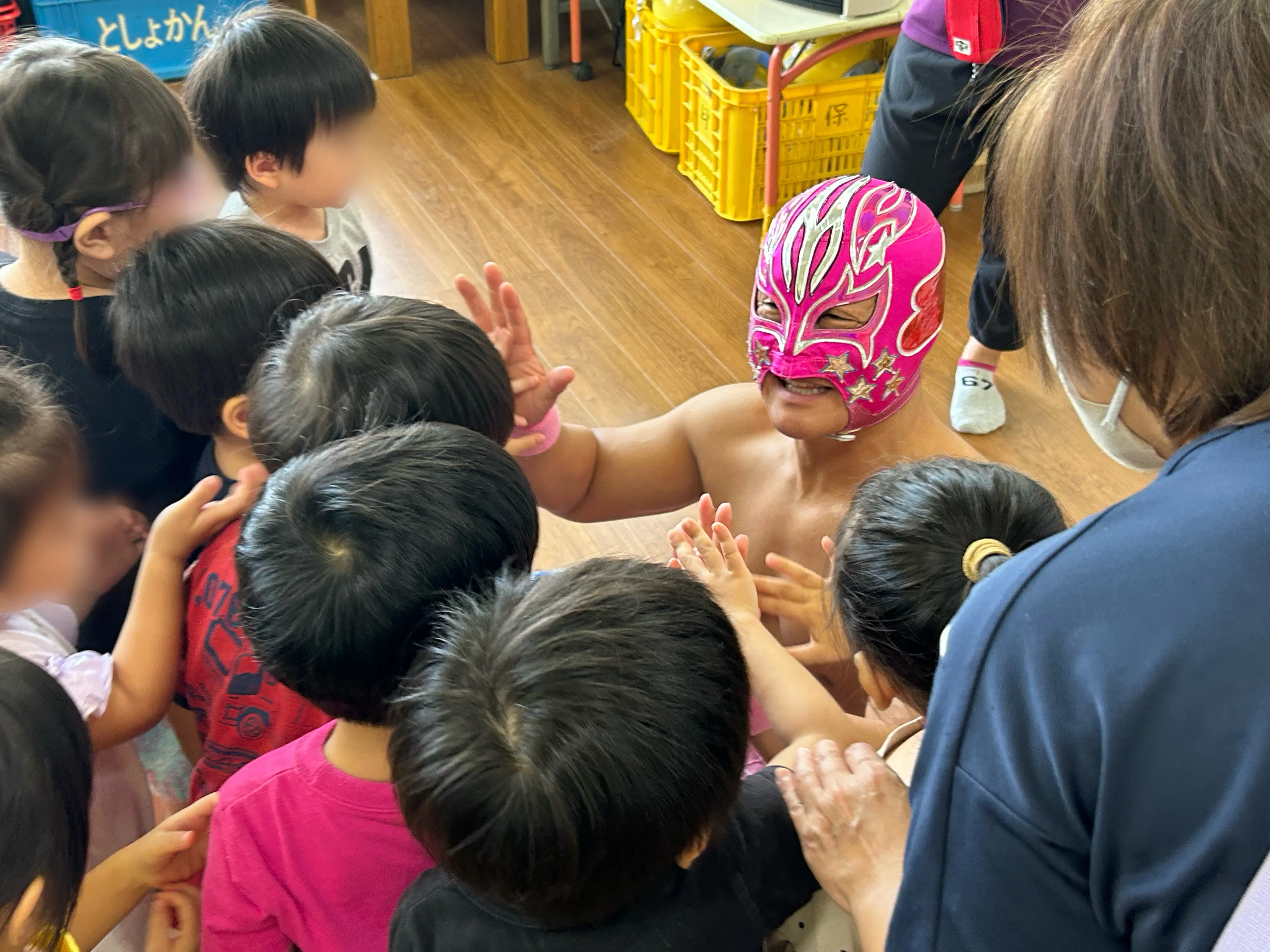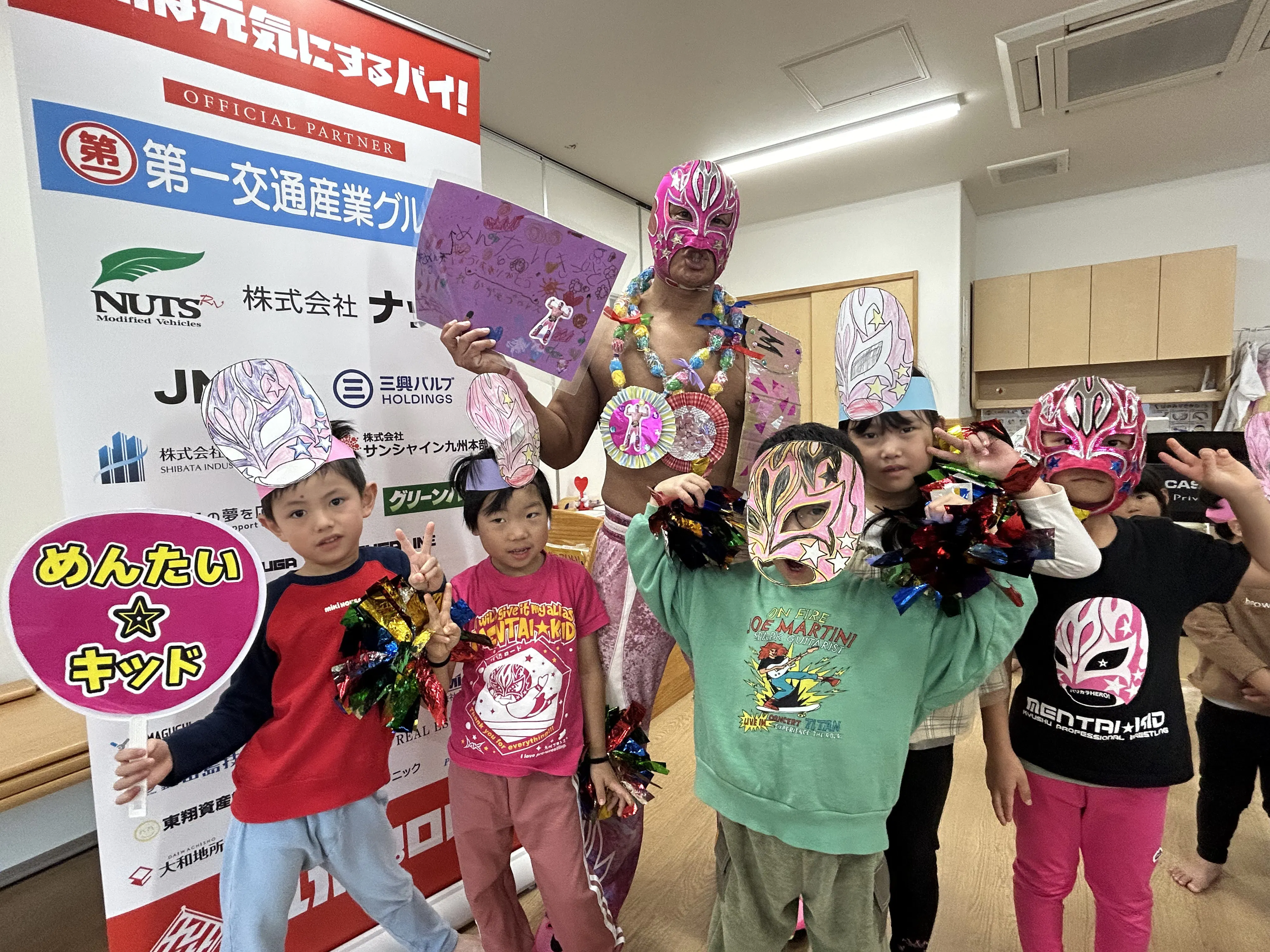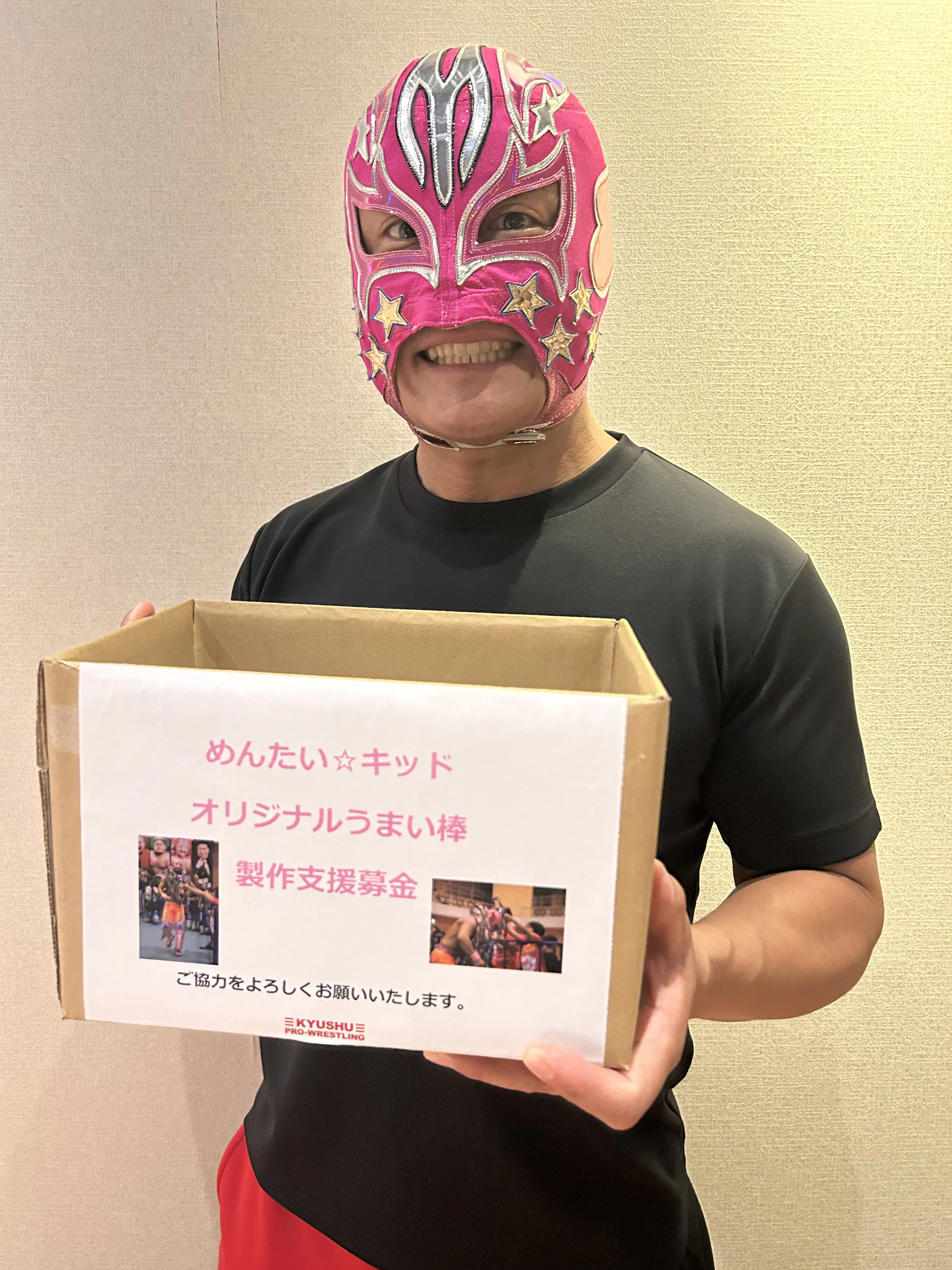 NPO法人九州プロレスの「めんたい☆キッド」と申します。福岡県を拠点として九州全域の幼稚園・保育園・児童養護施設・高齢者施設・障がい者施設等に訪問して利用者様たちと”元気の交換”をしたり、観戦無料のまちおこしイベントを通して沢山の方々に元気をお届けするお仕事をしているプロレスラーです。