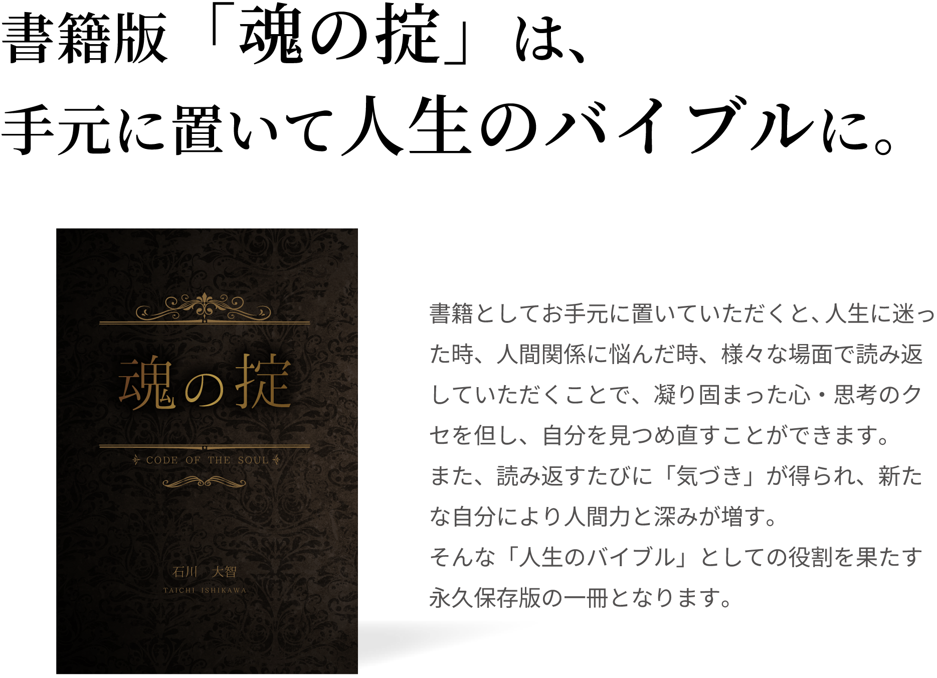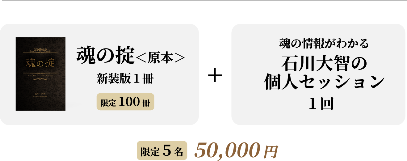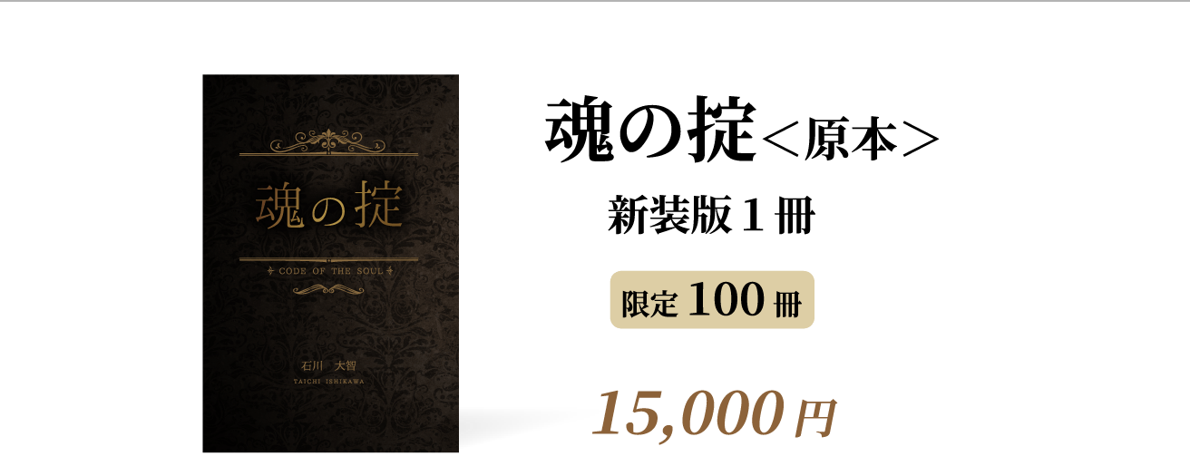 >>“魂の掟:原本”新装版1冊 + 魂の情報がわかる石川大智の個人セッション(1回)(限定5名)を支援する