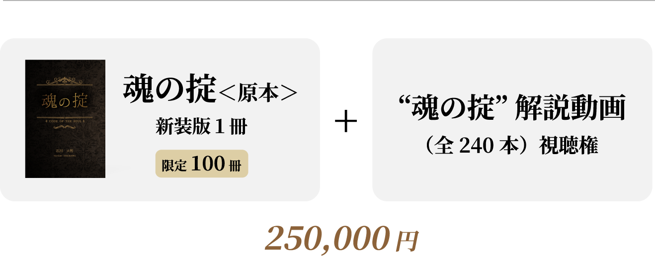 >>“魂の掟:原本”新装版1冊 + “魂の掟” 解説動画(全240本)視聴権を支援する