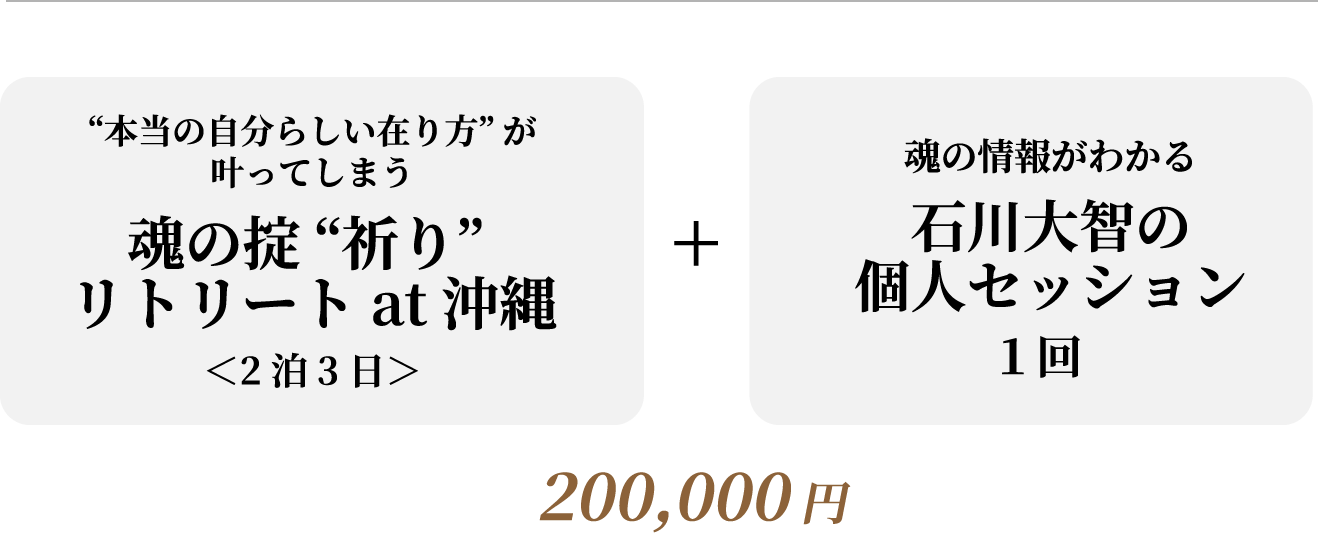 >>“本当の自分らしい在り方” が叶ってしまう「魂の掟 ”祈り” リトリート at 沖縄」(2泊3日)+ 石川大智の個人セッション(1回)を支援する