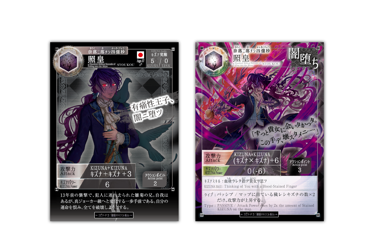 そのキャラクターの「闇堕ちバージョン」のキャラクターカードです。もちろん実際のゲームに使用できます。