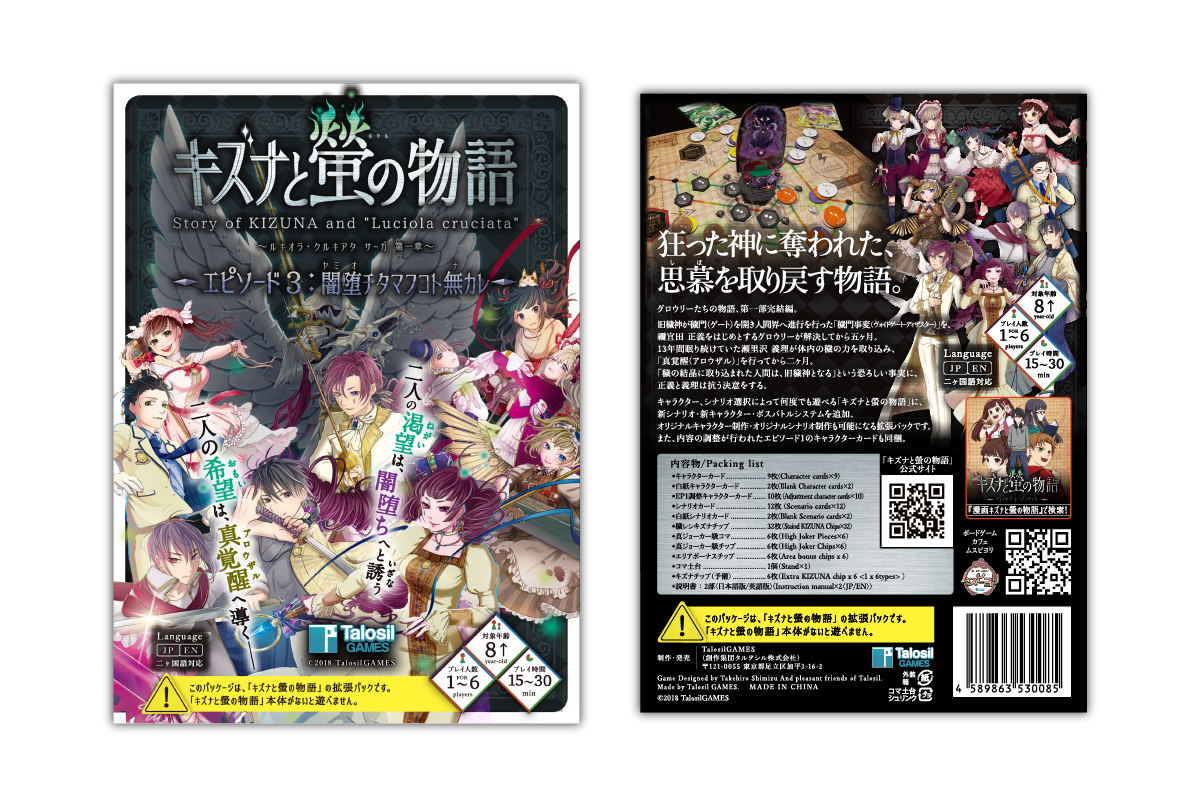 ボードゲーム「キズナと螢の物語 エピソード3:闇堕チタマフコト無カレ」単品をお届けします(送料込)。
